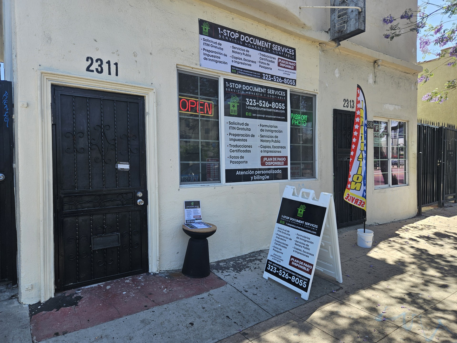 | Services | Servicios de Notary Public, Formularios de inmigración, Preparación de impuestos, ITIN, Certificamos documentos legales, Contratos, Poderes, Declaraciones juradas, Formularios I-130, Formulario I-485, formularios I-765, formularios N-400, Traducciones certificadas, Fotos de pasaporte, Copias, escaneos e impresiones |