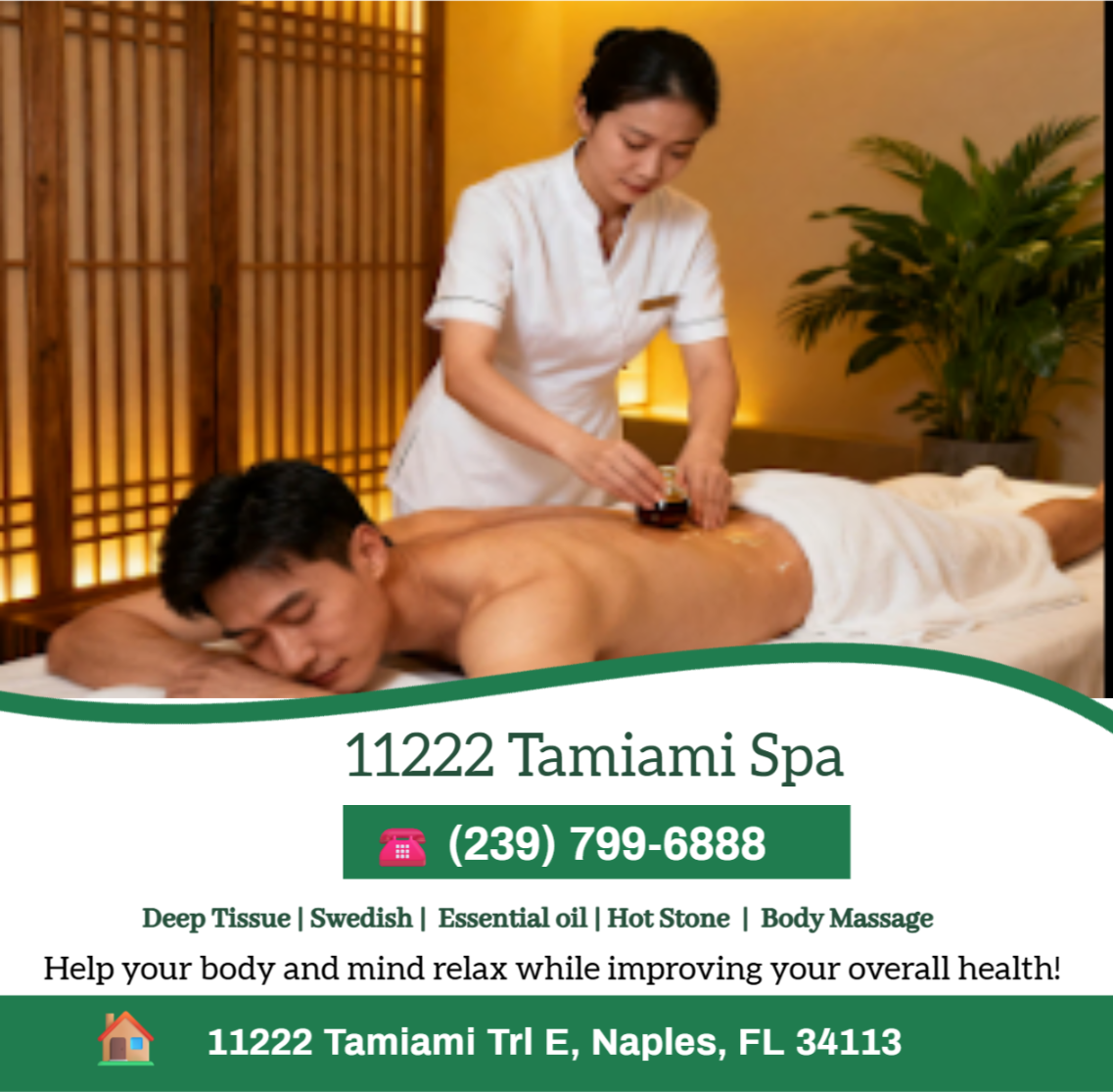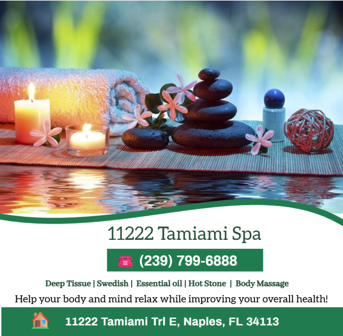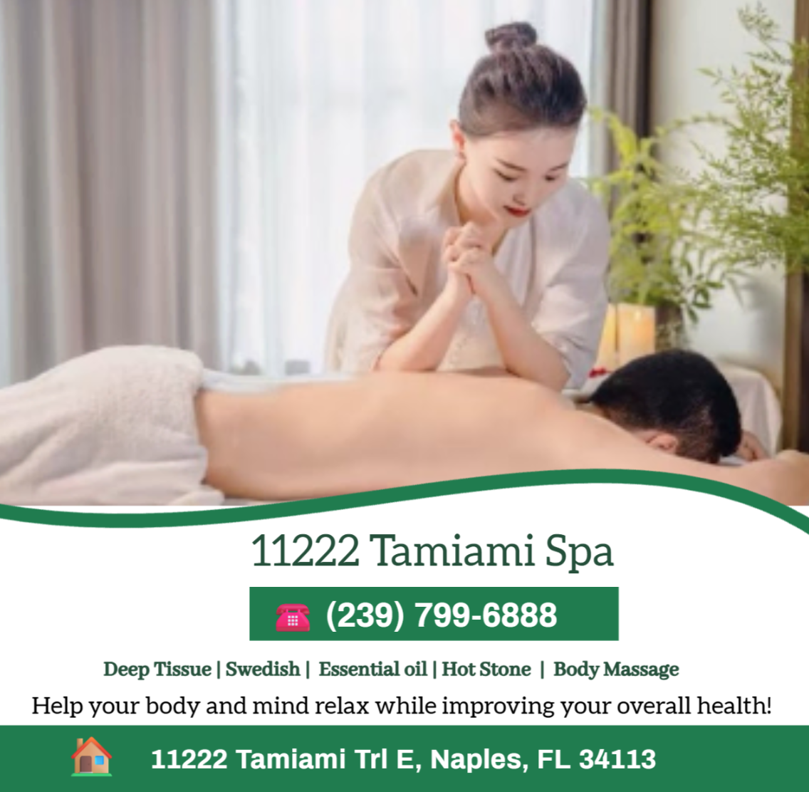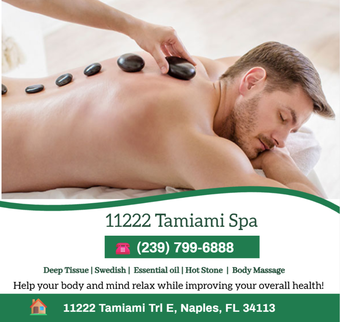 11222 Tamiami Spa is a premier massage spa located in Naples, FL. Relax and rejuvenate in the tranquil oasis of our spa, where skilled therapists offer a variety of massages to melt away your stress and tension. Whether you seek relief from muscle aches or simply want to indulge in some self-care, our spa provides the perfect retreat for your mind and body.