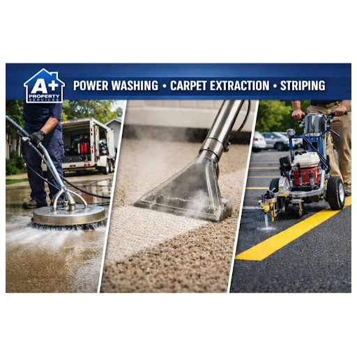 A+ Property Services is a premier property management company and pressure washing service in Spencer IA. We specialize in a variety of services including pressure washing, parking lot paint striping, carpet cleaning, lawn care, snow removal, and more. Our team of professionals is dedicated to providing top-notch service for both commercial and residential properties. Trust A+ Property Services to keep your property looking its best all year round.