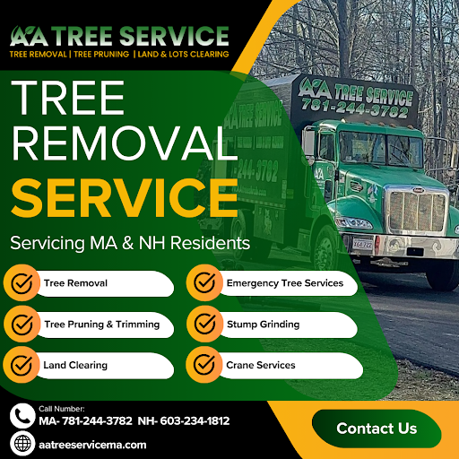 AA Tree Service in Reading MA offers professional tree services including tree removal, cutting, pruning, trimming, stump grinding, land clearing, and emergency tree services. Our experienced team is equipped with a crane for safe and efficient tree removal. Trust AA Tree Service for all your tree care needs in Reading and surrounding areas.