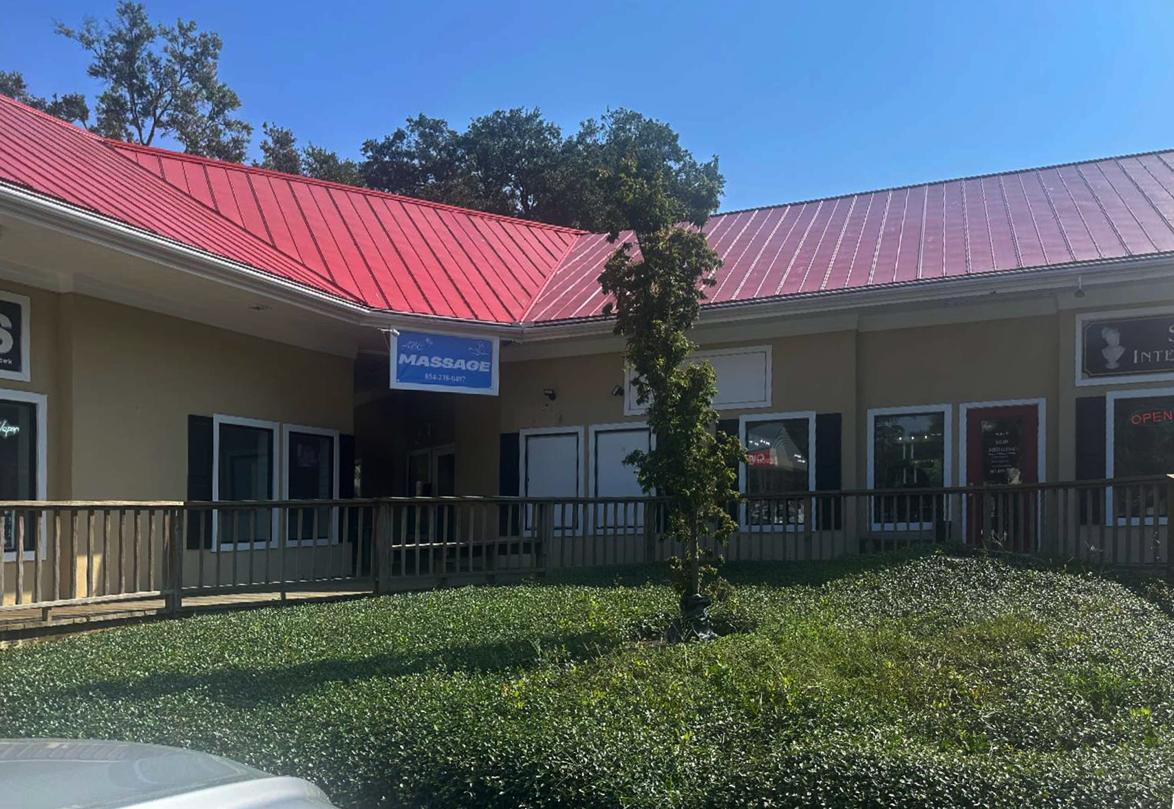 Front exterior of ABC Massage with storefront sign and entrance
