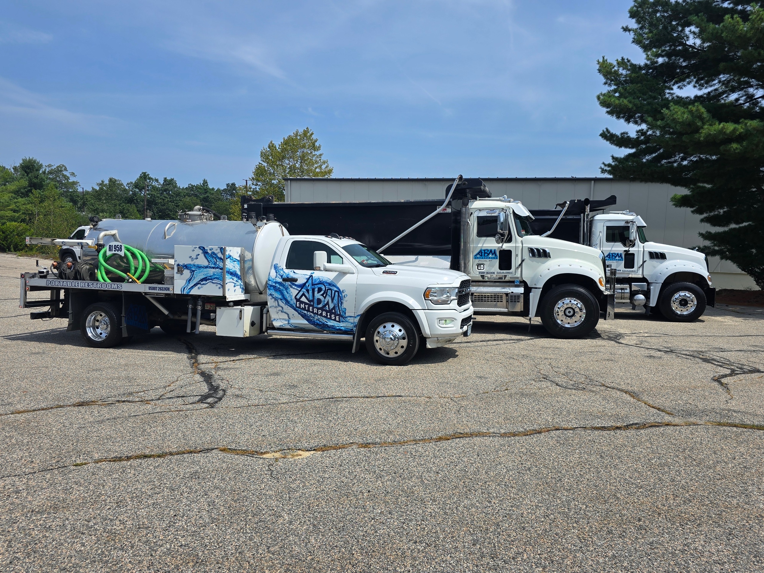 ABM Enterprise provides portable restroom rentals, ADA-compliant restroom rentals, portable handwashing restroom rentals, RV pumping services, construction material transportation, excavation services, paving services, demolition services, site work services, and water line services to all of Rhode Island and Eastern Massachusetts.