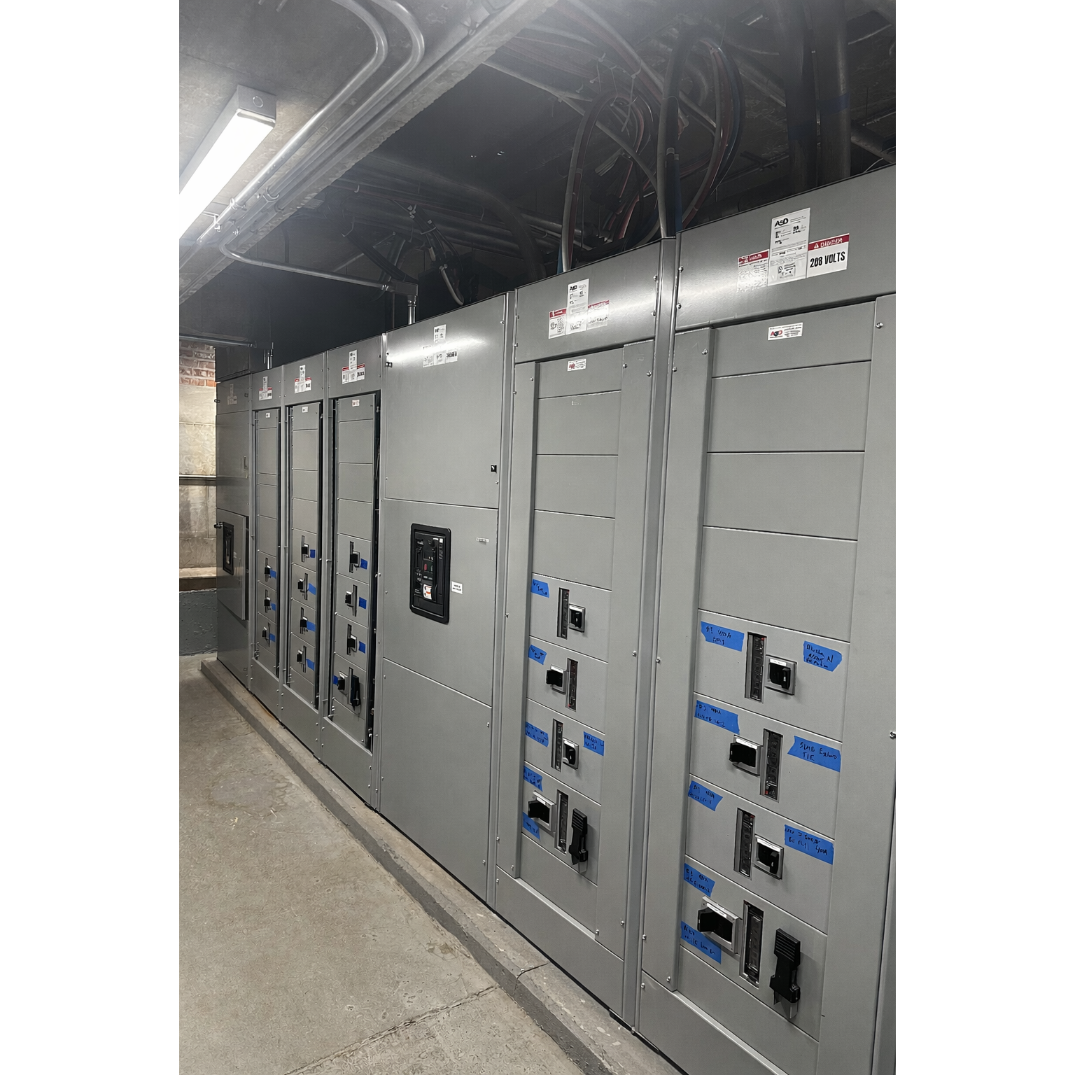 Large indoor service switchboard lineup