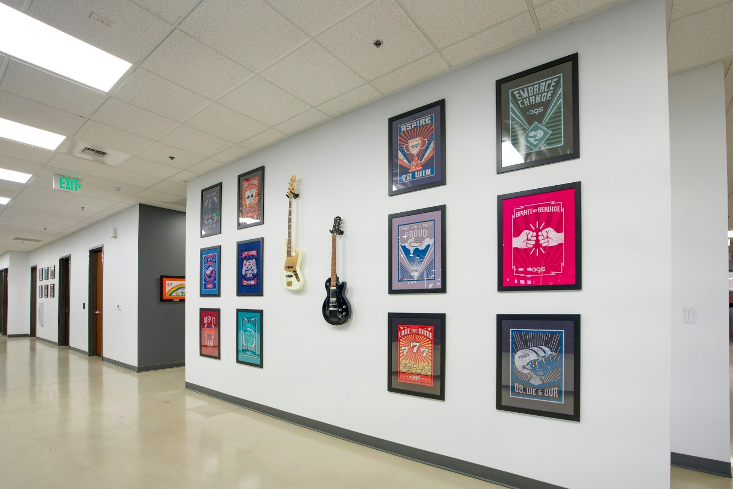 Lobby area inside AGS Gaming reflecting the innovation of a top casino game developer and slot machine manufacturer, where casino slot games, table games, and online casino gaming solutions are created for casinos worldwide.