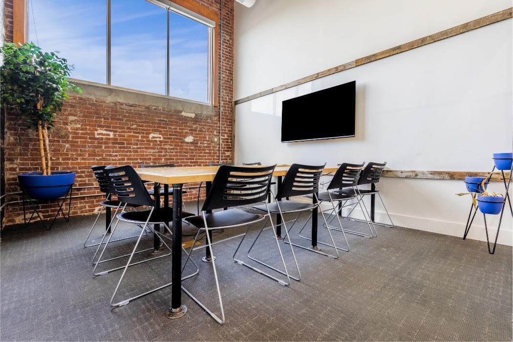 Exposed brick, tall windows, and minimalist design define our private offices — offering a peaceful space to build, create, and grow.