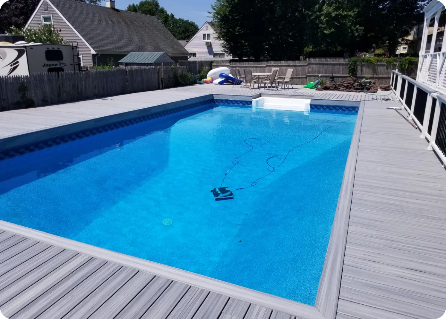 Unlock the full potential of your outdoor space with our custom deck designs that blend creativity and craftsmanship. At All Island Decks, we're not just builders; we're visionaries eager to transform your backyard into a haven of comfort and charm. With over three decades of expertise, we've developed a knack for designing and executing exquisite decks that perfectly align with your unique lifestyle needs. From drafting the initial concept to hammering in the final nail, our team is dedicated to exceeding your expectations at every step. Our approach is simple - understand your vision, deliver honest estimates, and build a space where memories will flourish.