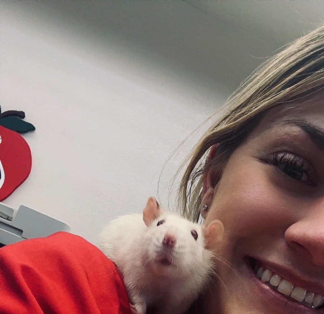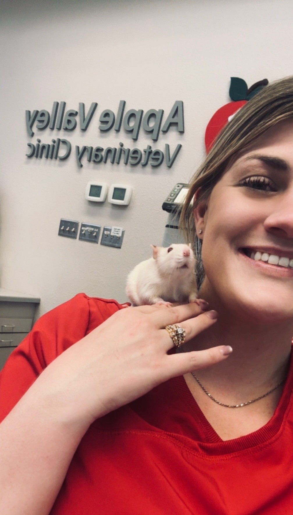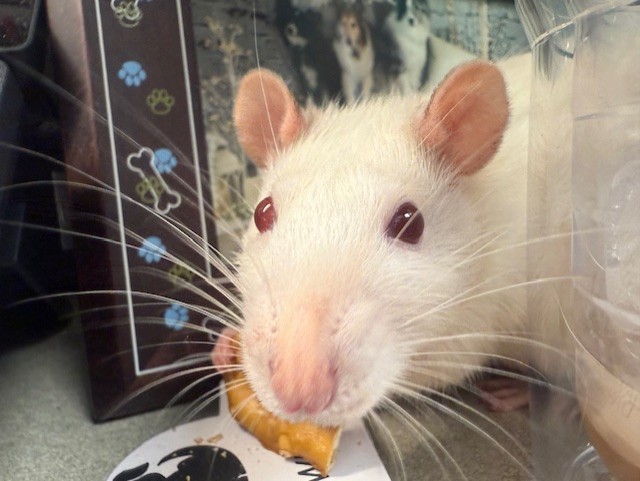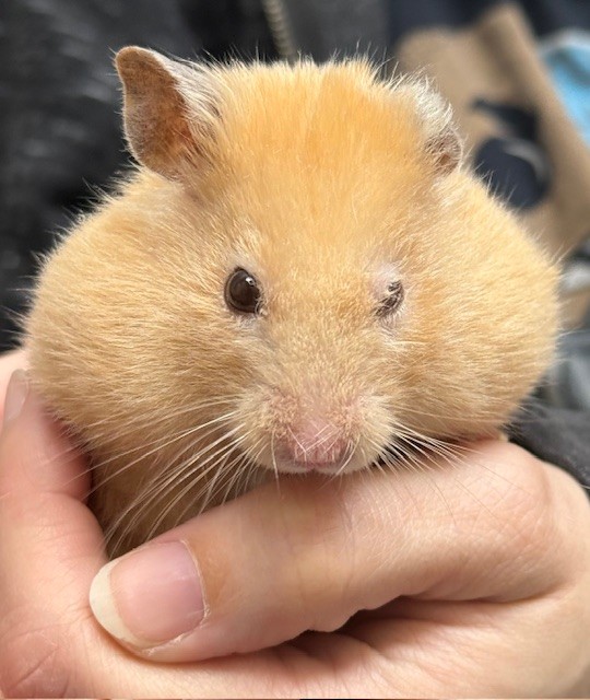 Mr. Kraken, a one and a half year old Syrian Hamster, came in to have his eye checked out. His cute cheeks are plum-packed with food.