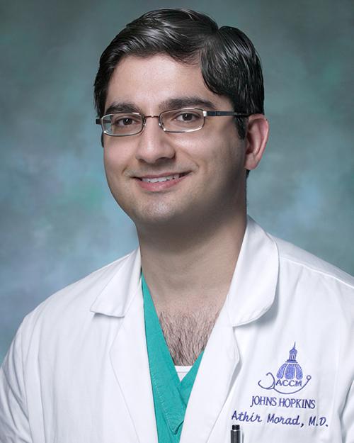Dr. Athir Morad is an assistant professor of anesthesiology and critical care medicine and neurology at the Johns Hopkins University School of Medicine.Dr. Morad was a Howard Hughes undergraduate research scholar at Georgetown University and the National Institutes of Health. He earned his M.D. from the University of Virginia and completed residencies in medicine at Inova Fairfax Hospital and in anesthesiology at the Johns Hopkins University School of Medicine. He performed a fellowship in neurocritical care medicine at the Johns Hopkins University School of Medicine. Dr. Morad joined the Johns Hopkins faculty in 2008.His research focuses on the perioperative management of pain for patients undergoing neurosurgery. He has completed two randomized controlled trials on the efficacy of patient controlled analgesia (PCA) in patients following craniotomy. Current research interest includes studying the safety of opioid administration following craniotomy using end-tidal CO2 detection.Dr. Morad also has an interest in resident education. He created the department’s current ACGME-compliant Neuroanesthesia curriculum and has earned a Teacher of the Year award as recognition for his efforts in the area of education.