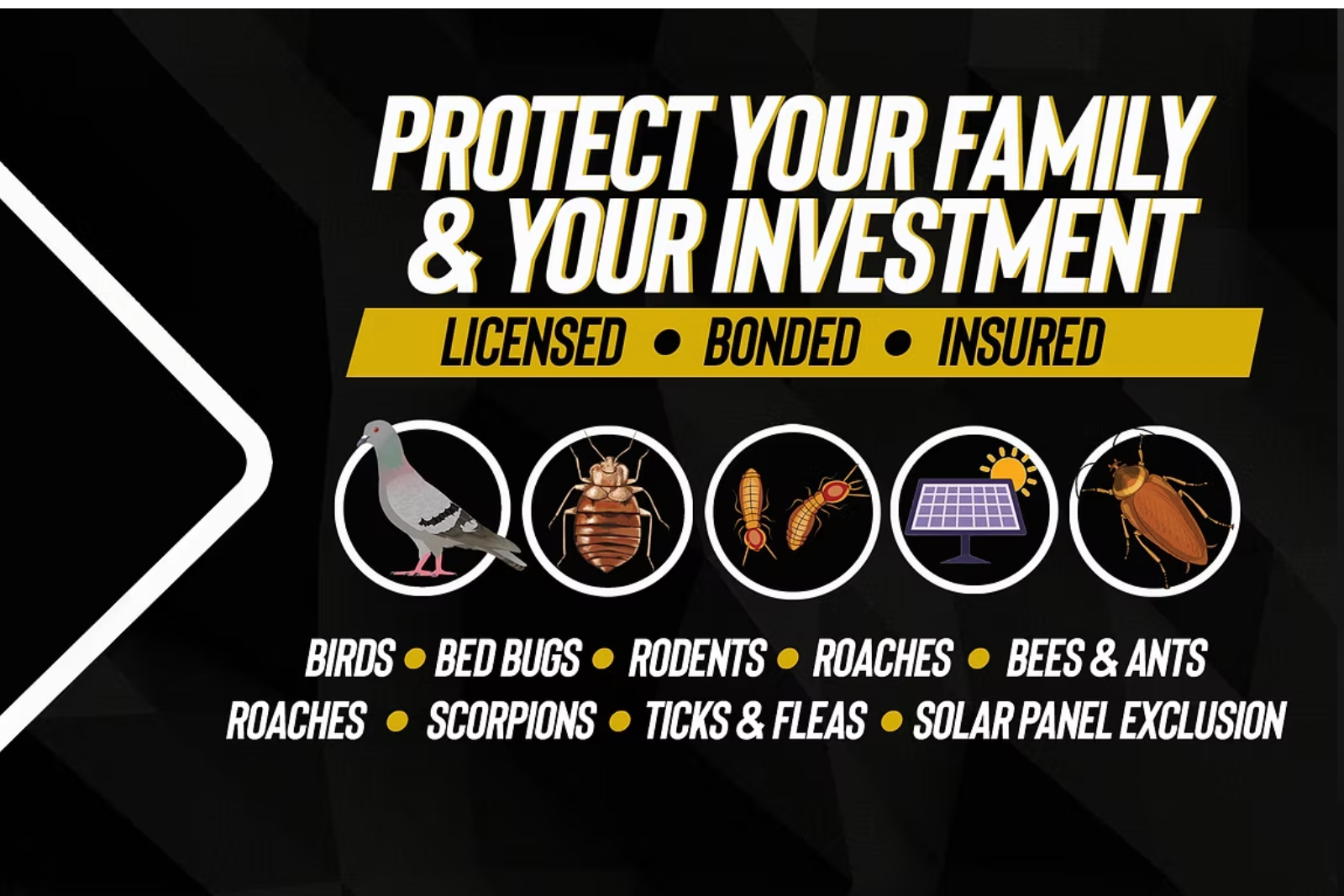 Services | General Pest Control, Bed Bug Treatment, Termite Treatment, Scorpion Control, Rodent Control, Roach Extermination, Tick & Flea Control, Ant Control, Spider Control, Bee Removal, Pest Inspection & Prevention, Residential Pest Control, Commercial Pest Control, Same-Day & Emergency Pest Control, Pigeon Control & Removal, Bird Proofing Services, Solar Panel Bird Barriers, Roof & Ledge Netting Installation, Solar Panel Cleaning, Solar Panel Pigeon Proofing, Solar Panel Barrier Installation, Solar Panel Mesh Guard Installation, Solar Panel Bird Deterrents, Solar Panel Inspection & Maintenance |