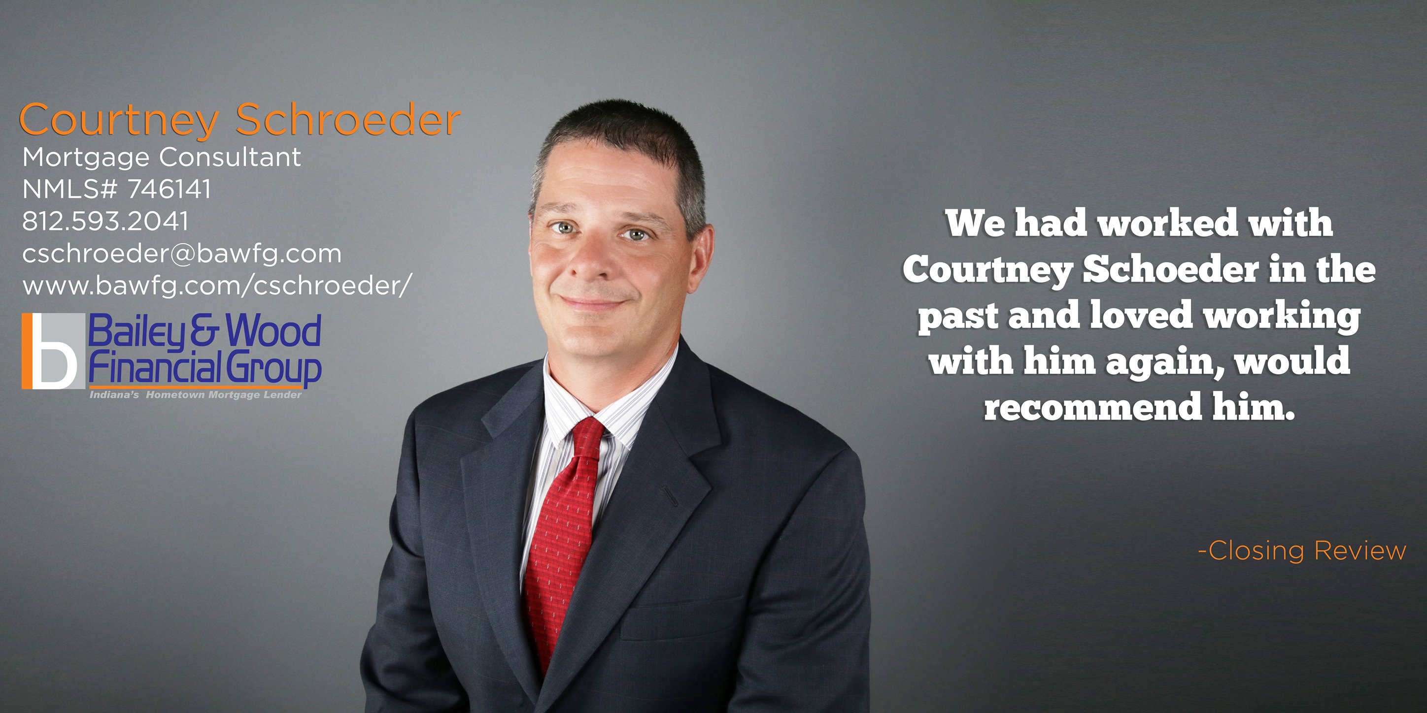 Indiana's Hometown Mortgage Lender providing a wide range of Mortgage products to our clients. No matter your credit history or needs call Bailey & Wood as we have the products and service to put you in the best position. Low rates and fees combined with the fastest closings in the industry make Bailey & Wood a must when looking for a mortgage.