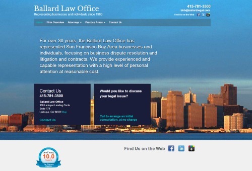 For over 30 years, the Ballard Law Office has represented San Francisco Bay Area businesses and individuals, focusing on business dispute resolution and litigation and contracts.