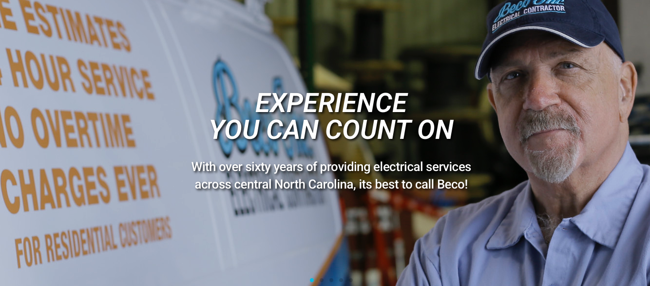 Beco Inc. consists of a knowledgeable, experienced staff as well as trained professional technicians to get the job done right. Along with offering 100% guarantee on all work performed, we offer 24/7 service 365 days a year with no overtime charges ever for residential electrical customers. We proudly provide residential and commercial electrical services to the Triad area of North Carolina and its surrounding areas, with locations in High Point, Winston-Salem, and Greensboro, North Carolina.