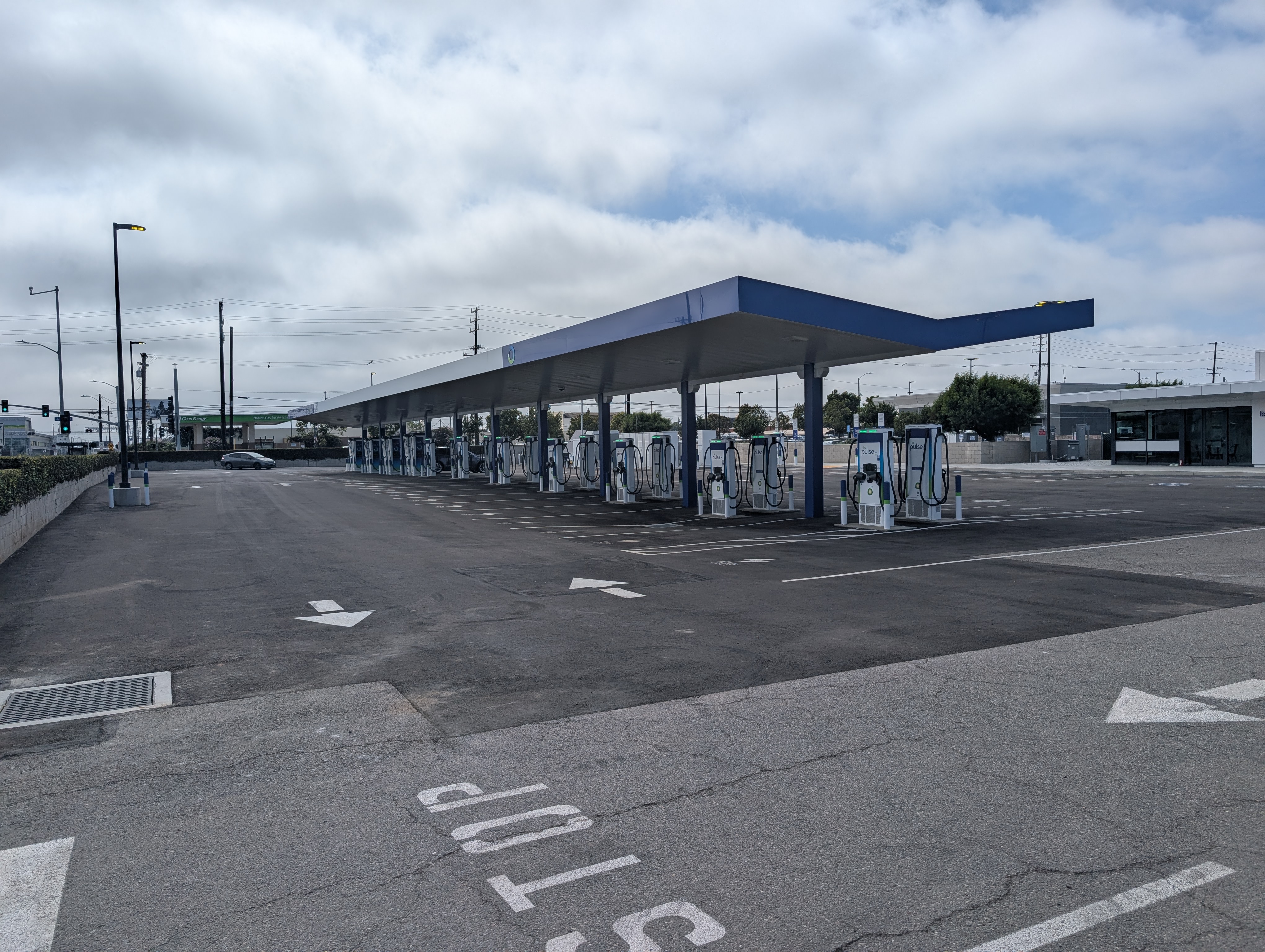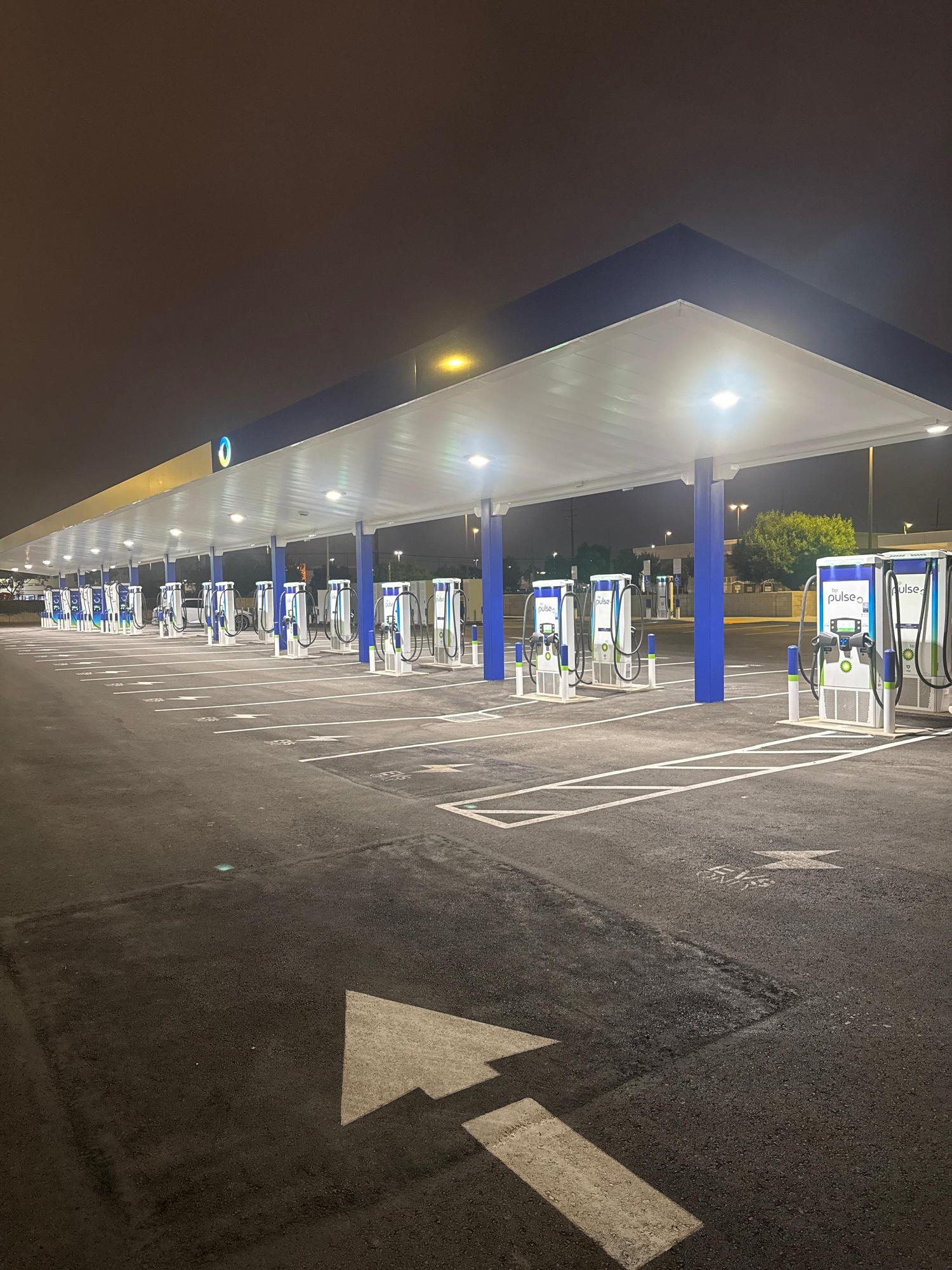 This charging station in Inglewood, California features 24 CCS chargers with 48 bays. While you charge up, enjoy our lounge with restrooms, vending machines, and seating. Pay for your charging by credit or debit card, or via the bp pulse app. Open 24/7.