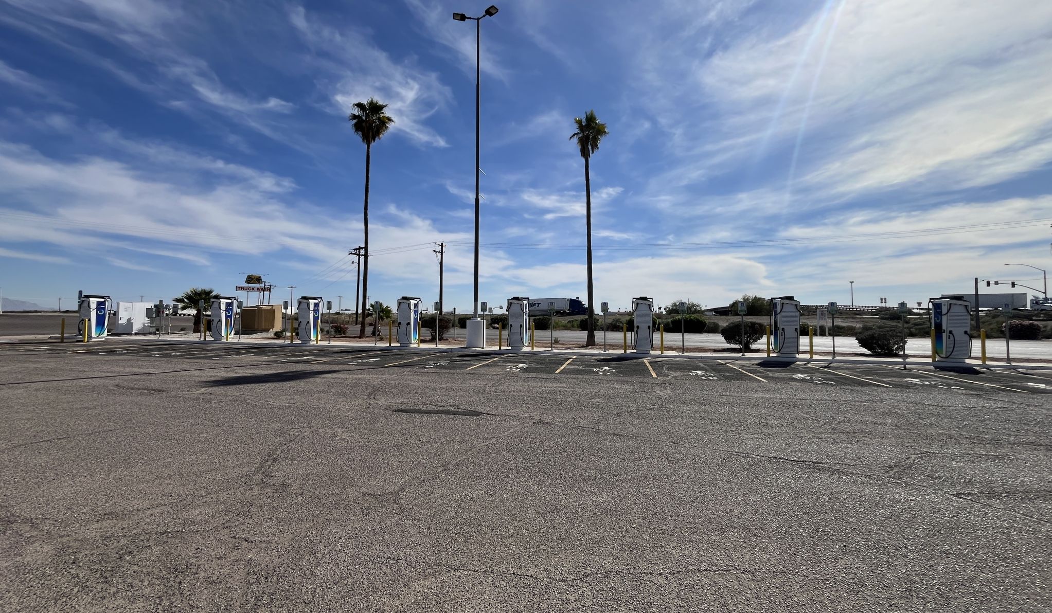 This charging station in Eloy, Arizona features 8 CCS & NACS chargers with sixteen bays. While you charge up, enjoy our convenience offerings at Travel Centers of America with restrooms and restaurants. Pay for your charging by credit or debit card, or via the bp pulse app. Open 24/7.