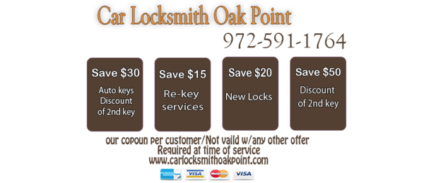 There are few areas of town where Car Locksmith Oak Point TX doesn't operate. We have a wider coverage that ensures that when you go about your errands, you have the help you need if and when you want it.