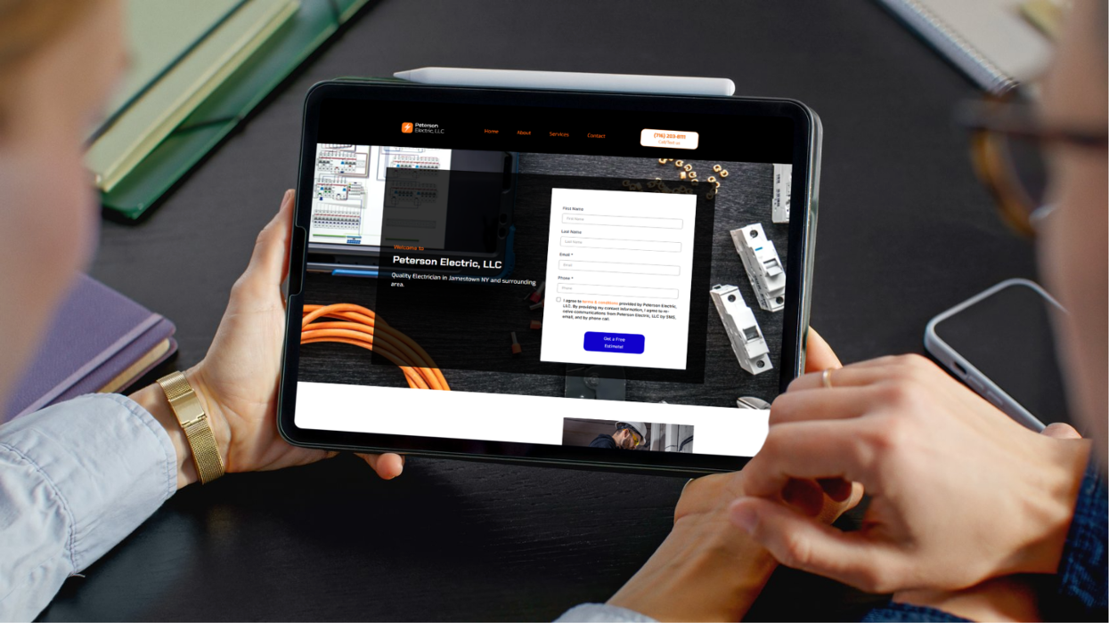 Electrician business website shown on a device mockup, designed by Codewrk LLC for local home service contractors.