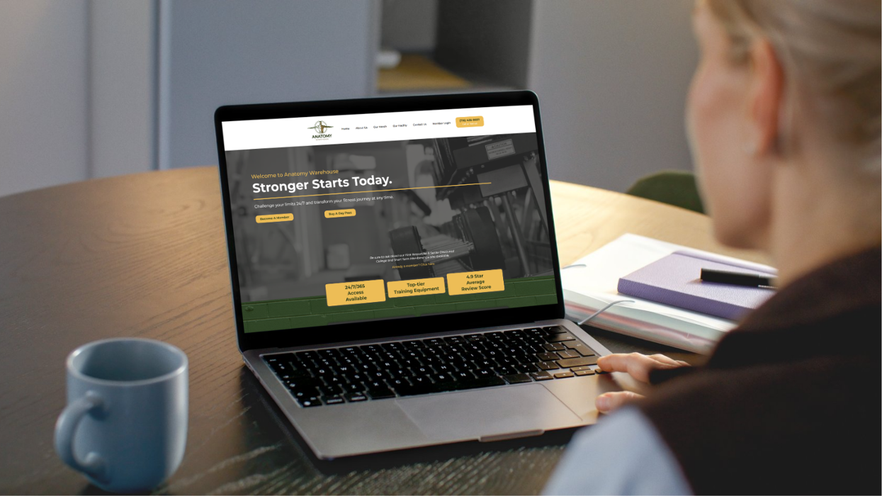 Modern gym website design presented on a device mockup, showcasing Codewrk LLC’s work for fitness centers and training studios.