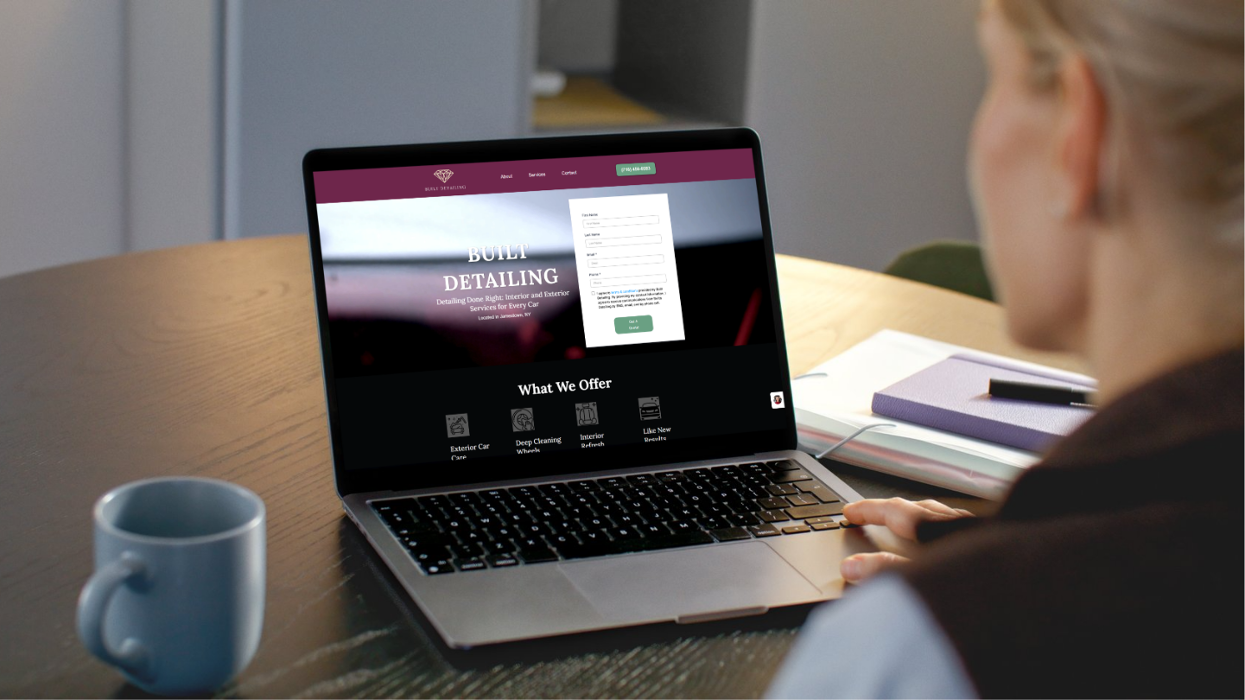 Example of a car detailing website design presented on a device mockup, highlighting Codewrk LLC’s work for automotive service businesses.