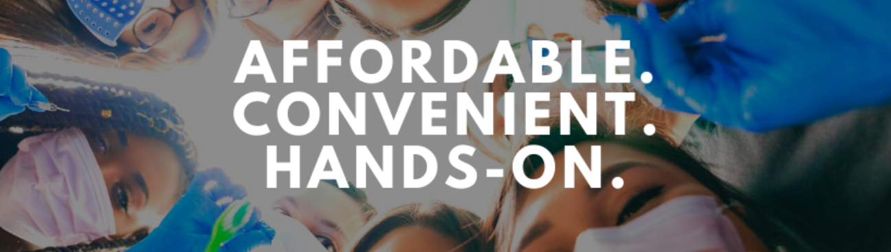 Our comprehensive hybrid learning program includes in-person labs at a local dental office once a week, paired with at-home learning through self-paced online lectures during the week. Columbus Dental Assistant School prepares you with all the skills you need using a proven curriculum taught by passionate and knowledgeable school instructors who are excited to help you succeed in the field.