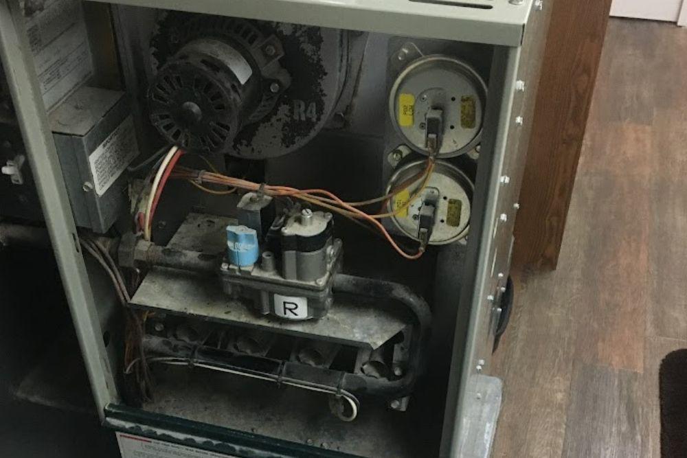 Pictured here is a malfunctioning Maple Grove furnace in need of maintenance.