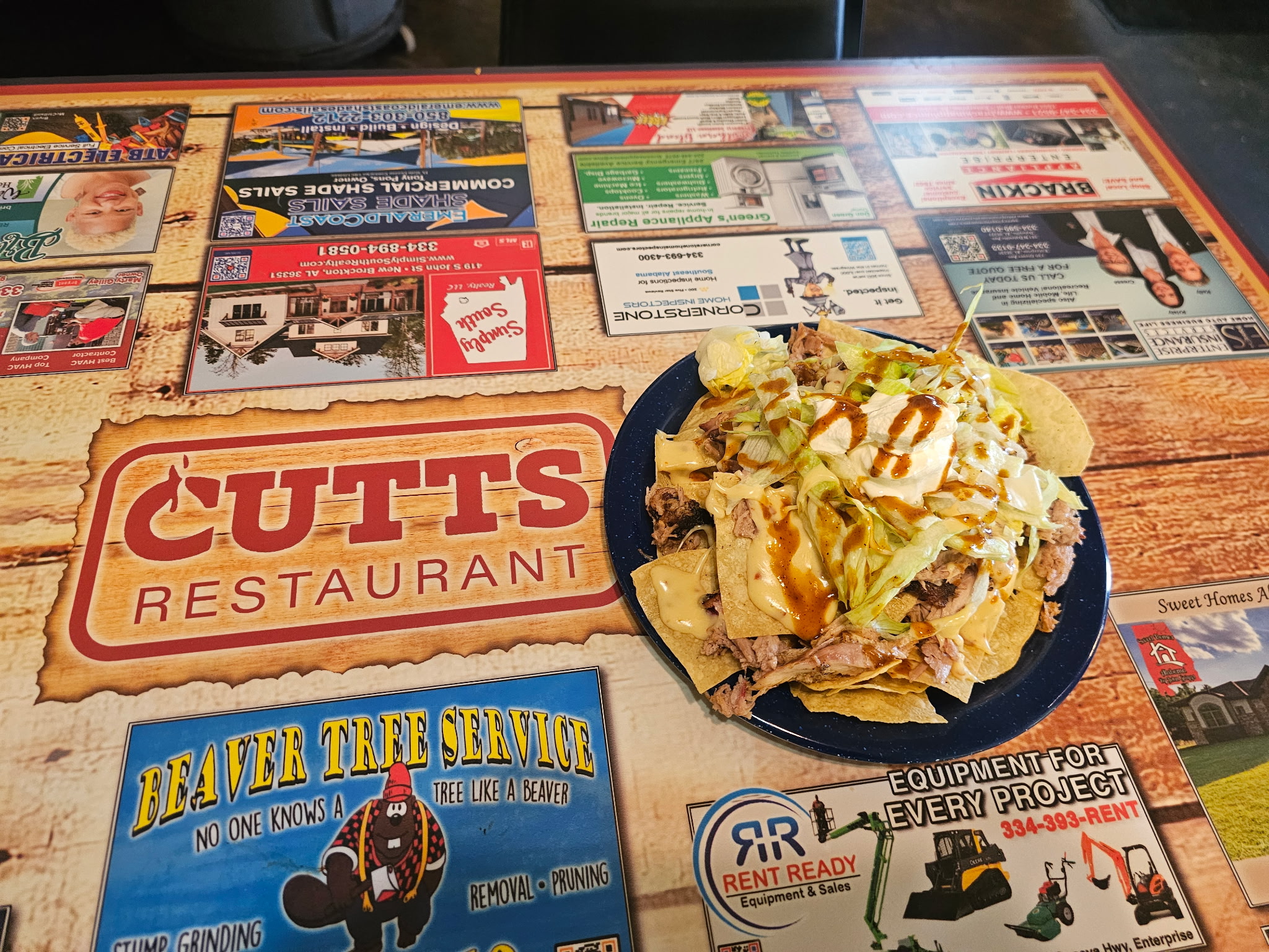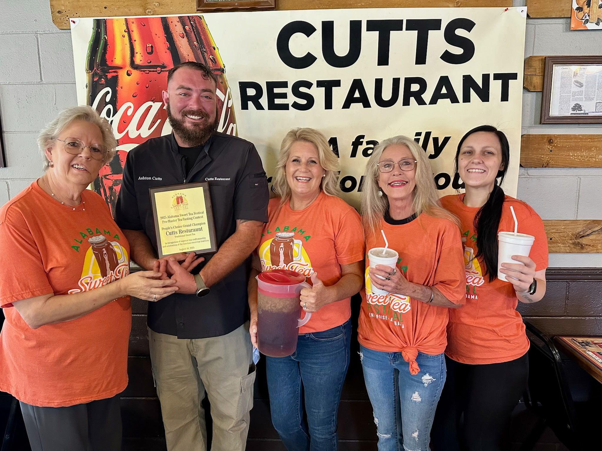 The restaurant receives significant traffic from families heading to Gulf Coast beaches, and the Cutts name attracts attention nationwide; they ship barbecue sauce and hats across the US.