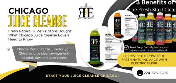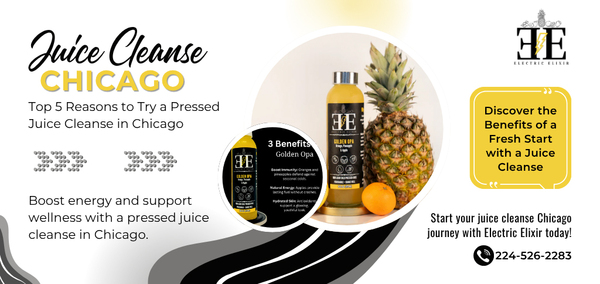 Electric Elixir makes raw organic cold pressed juices and cleanses in Chicago. Every bottle is made fresh with nutrient rich fruits, herbs, and vegetables to fuel your health and energy. We deliver straight to your door so you can nourish your body and elevate your life.