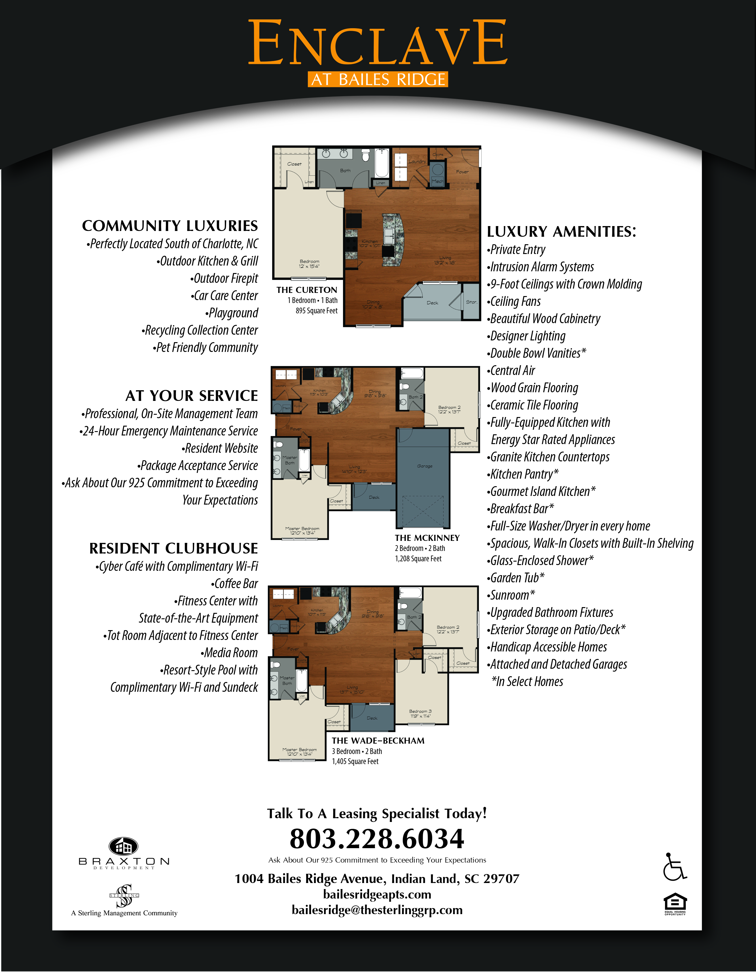 Enclave at Bailes Ridge Apartments in Indian Land, South Carolina, presents a new benchmark in luxury living. Nestled amidst picturesque landscapes, our community offers a tranquil haven for those seeking the perfect blend of comfort and opulence. Our spacious one-, two-, and three-bedroom apartment homes are designed to provide an unparalleled living experience with premium features and modern amenities. Prepare to be captivated by a residential retreat that sets a new standard for luxury living in Indian Land.
