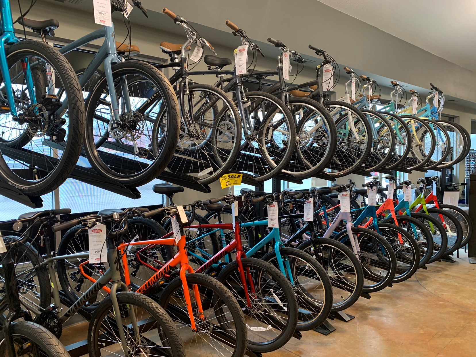 At ERIK'S in Sioux Falls, we offer a wide selection of bicycles, gear, & clothing! With the latest electric, road, & mountain bikes from top brands like Specialized & Aventon, our expert staff is ready to help you find the perfect ride.