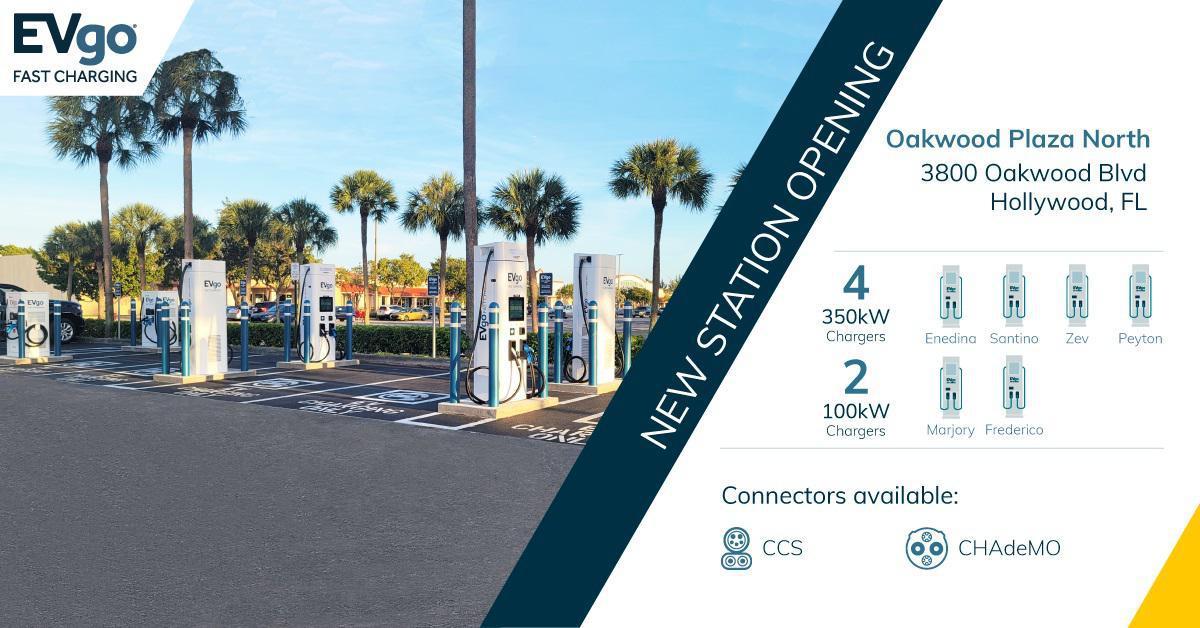 This public EVgo charging station in Hollywood provides fast charging for all major electric vehicles. Located on 3800 Oakwood Blvd, it's near Mattress Firm Clearance Center Oakwood Plaza, Yum Berry Cafe & Sushi Bar. The site offers 24/7 access, is ADA-compliant, and supports both CCS and CHAdeMO connectors. While charging, drivers can visit nearby shops or grab food within walking distance. Customers can use the EVgo app to check charger availability, track sessions, and view Time-of-Use pricing where available. It's a convenient and reliable option for both local drivers and those passing through the area.