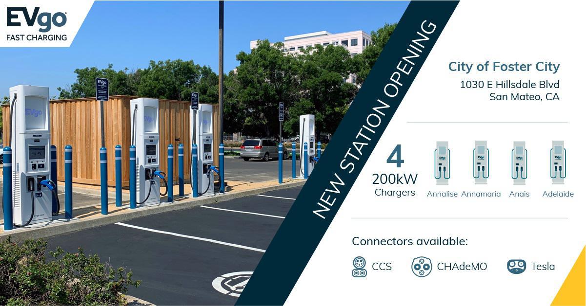 This public EVgo charging station in Foster City provides fast charging for all major electric vehicles. Located on 1030 East Hillsdale Boulevard, it's near Foster City Community Center. The site offers 24/7 access, is ADA-compliant, and supports both CCS and CHAdeMO connectors. While charging, drivers can visit nearby shops or grab food within walking distance. Customers can use the EVgo app to check charger availability, track sessions, and view Time-of-Use pricing where available. It's a convenient and reliable option for both local drivers and those passing through the area.