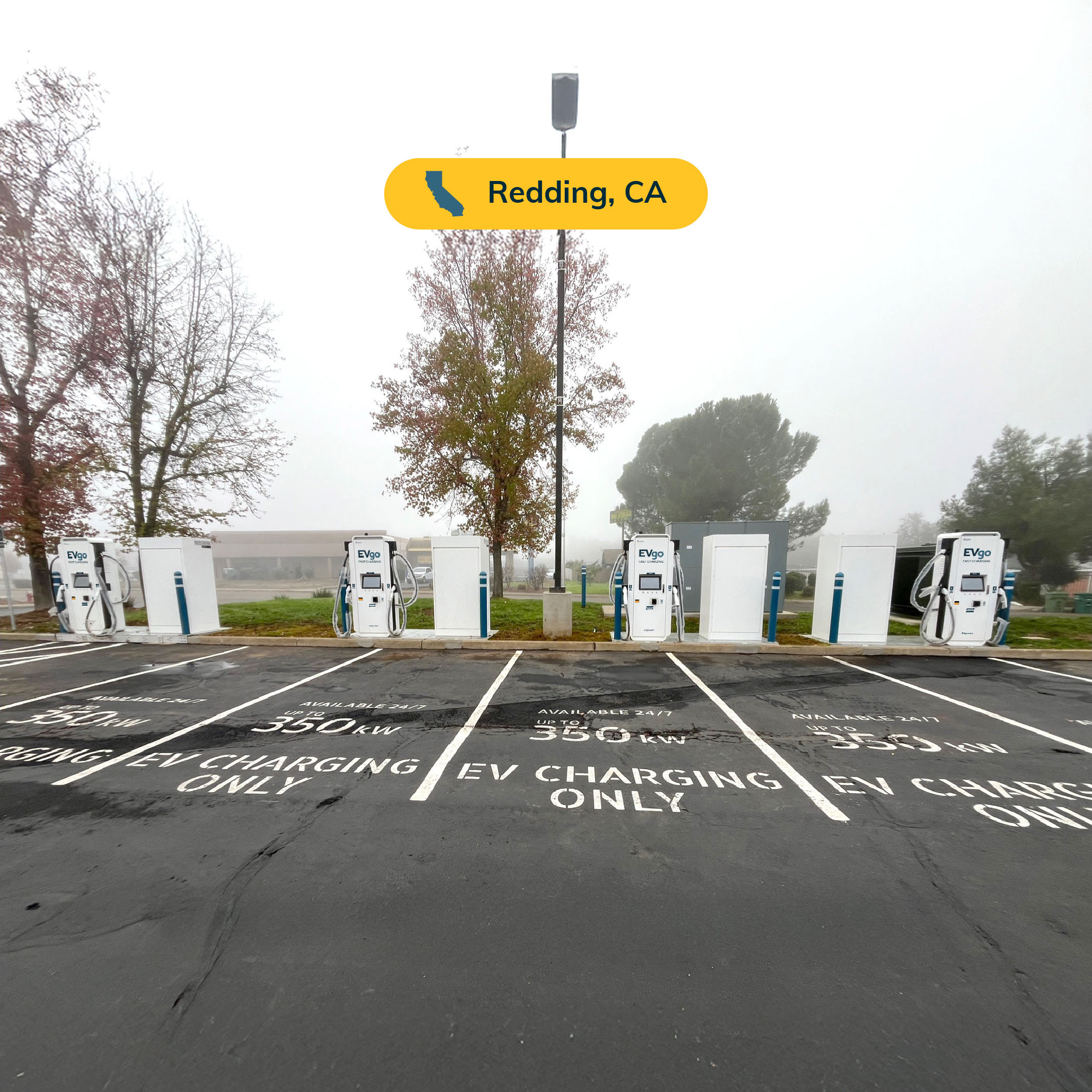 This public EVgo charging station in Redding provides fast EV charging for all major electric vehicles. Located on Hartnell Ave, it’s near Burrito Bandito and Yama Sushi. The location offers 24/7 access and has CCS connectors. While charging, drivers can visit nearby shops or grab food within walking distance. Customers can use the EVgo app to view charger availability, track sessions, and view Time of Use pricing.