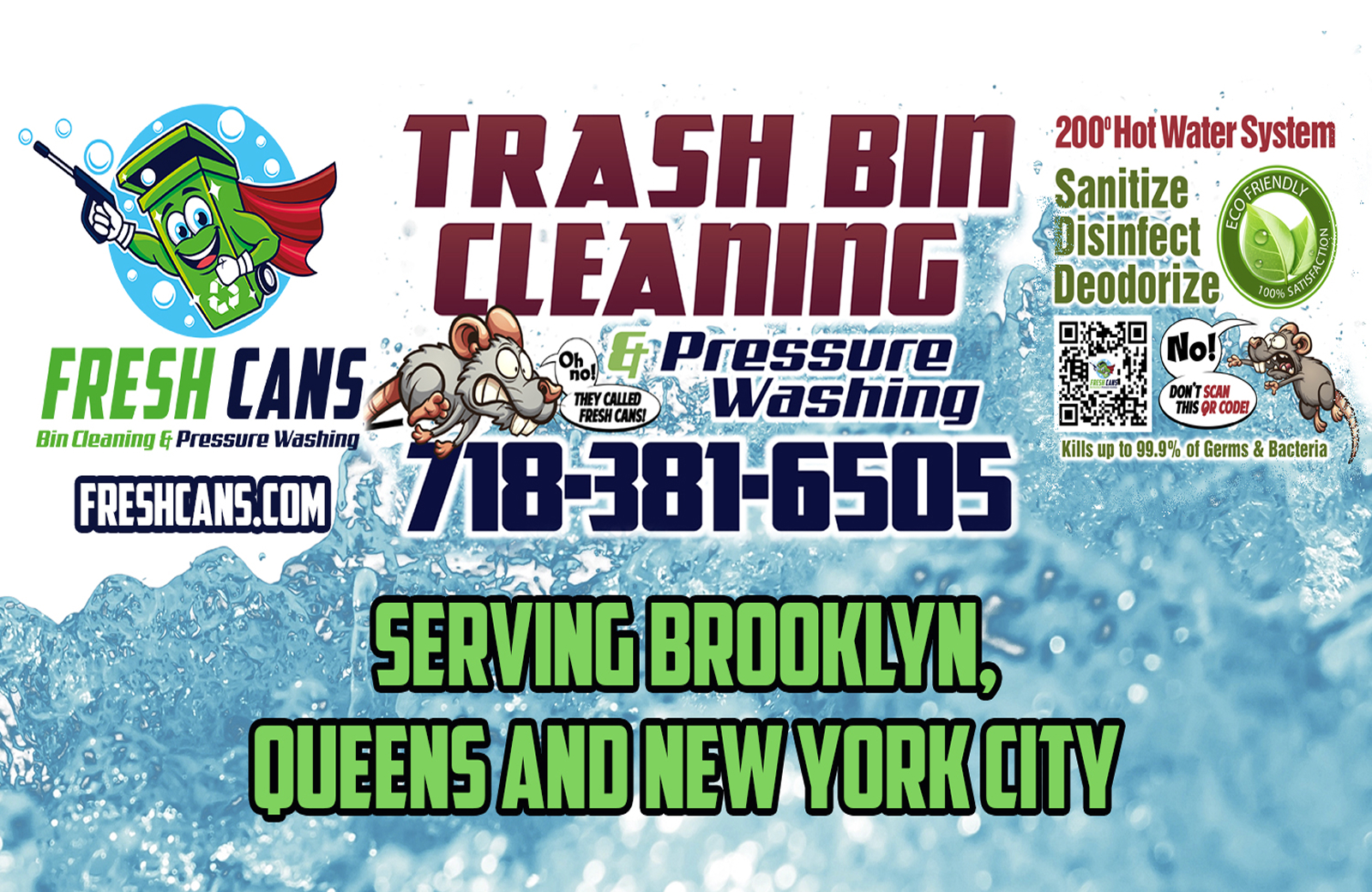 Fresh Cans is a locally owned and operated business serving Brooklyn, Queens, Long Island, and the greater New York City area. We specialize in residential trash bin and commercial dumpster cleaning, utilizing eco-friendly, high-pressure systems to eliminate bacteria, odors, and grime from bins on-site for homes and businesses.