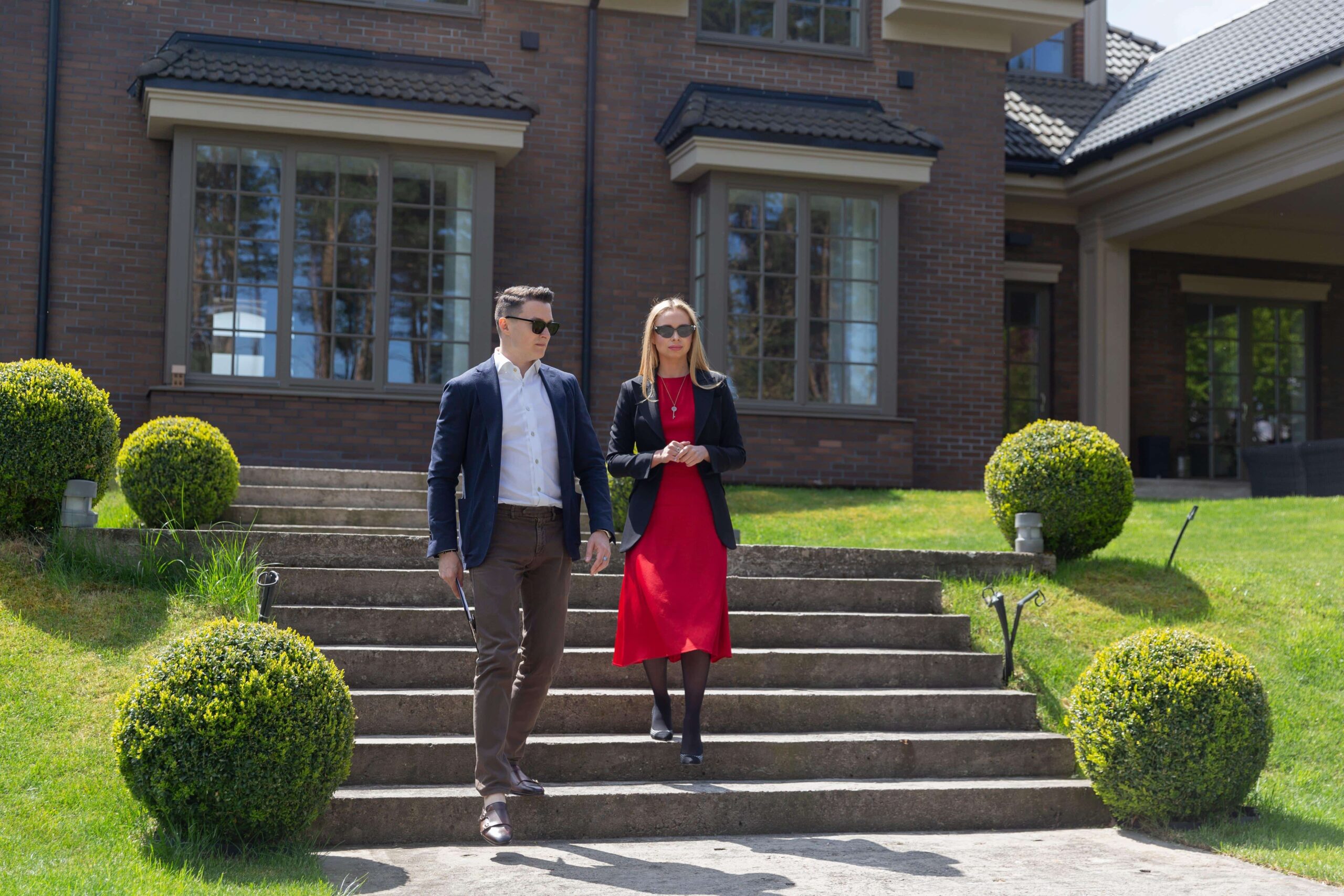 This image depicts two well-dressed individuals outside a luxury estate, symbolizing the discreet yet vigilant presence of estate security services provided by Global Risk Solutions, Inc. Tailored for high-net-worth clients, estate security ensures 24/7 protection of property, residents, and guests. With services ranging from perimeter surveillance and access control to personal escort and rapid response, Global Risk Solutions, Inc. provides comprehensive protection solutions that blend seamlessly into high-end residential lifestyles.