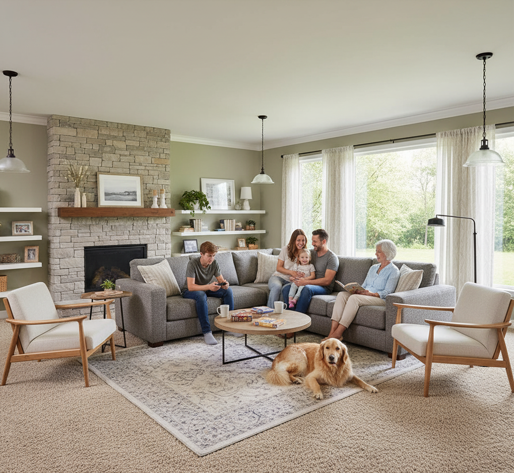 Large room after carpet cleaning in Buena Park, CA