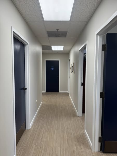 Fresh look for the Carolina Cataract office in downtown Charleston! We gave the space a clean, timeless update and interior paint with Sherwin-Williams Accessible Beige on the walls and bold Naval on the doors. Neutral warmth meets modern contrast for a professional, welcoming finish.