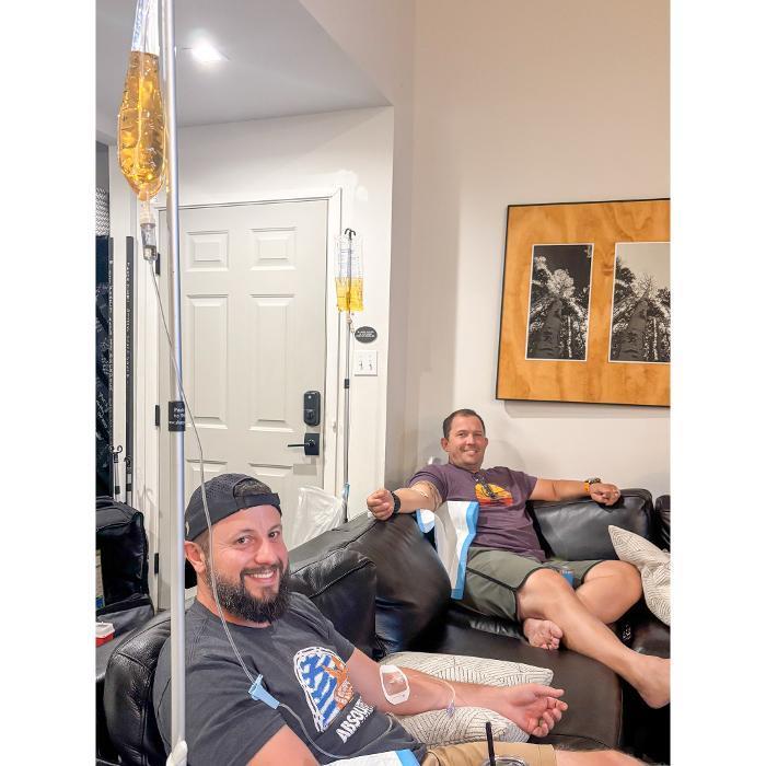 Group IV therapy session. Professional mobile service for bachelor parties, corporate events, and group wellness treatments.
