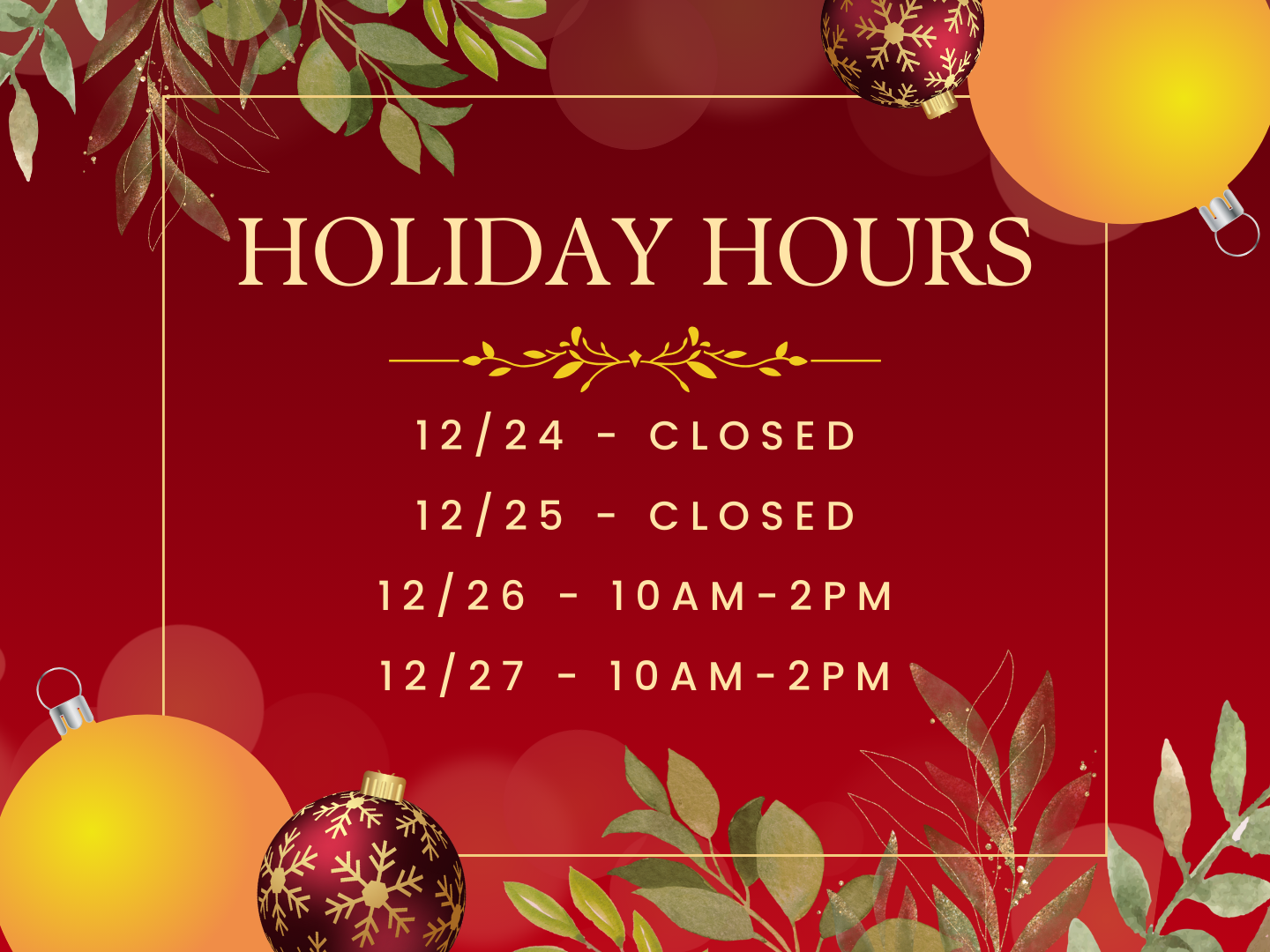 Our office will be closed on 11/28 and 11/29 for Thanksgiving. We will return to our normal hours on 12/2. Happy Thanksgiving!