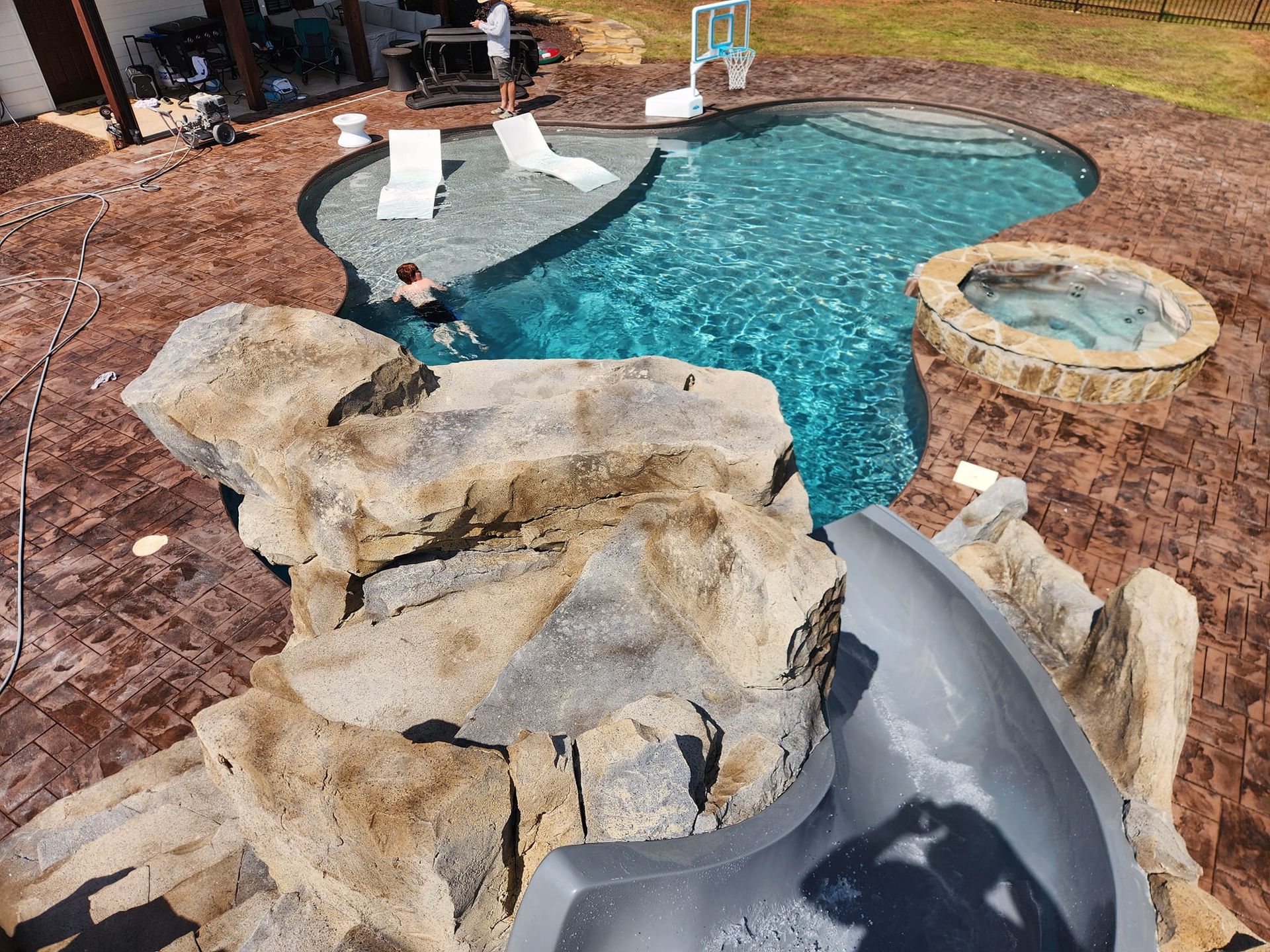 | Services | schedule custom concrete service, decorative concrete service, custom pool slides service, carved water slides for backyard pools service, book custom pool grottos service, carved backyard grottos with waterfalls service, custom water features service, carved waterfalls and streams for pools service, sculpted retaining walls service, decorative rock retaining walls service, custom fire pits service, sculpted fire features for backyards service, faux trees service, custom concrete trees service, stamped concrete patios service, outdoor kitchens service, custom rock outdoor kitchens service, custom backyard design service, pool renovations service, backyard renovation service |