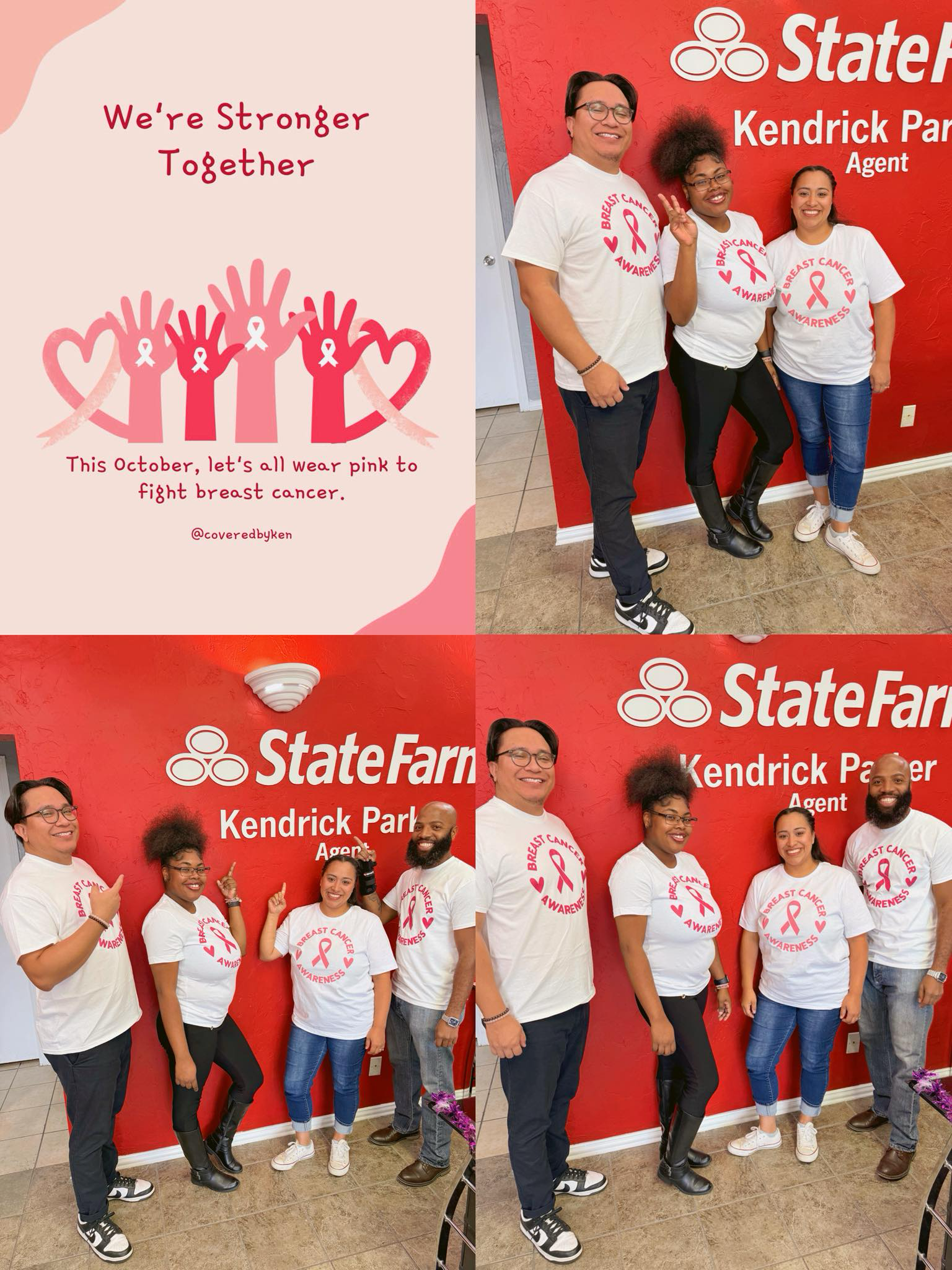 Think Pink! Our team at Kendrick Parker State Farm showed up in our best pink fits to support Breast Cancer Awareness Month! We wear pink to honor the fighters, the survivors, and the ones we’ve lost. Let’s keep spreading love, hope, and awareness because early detection saves lives!