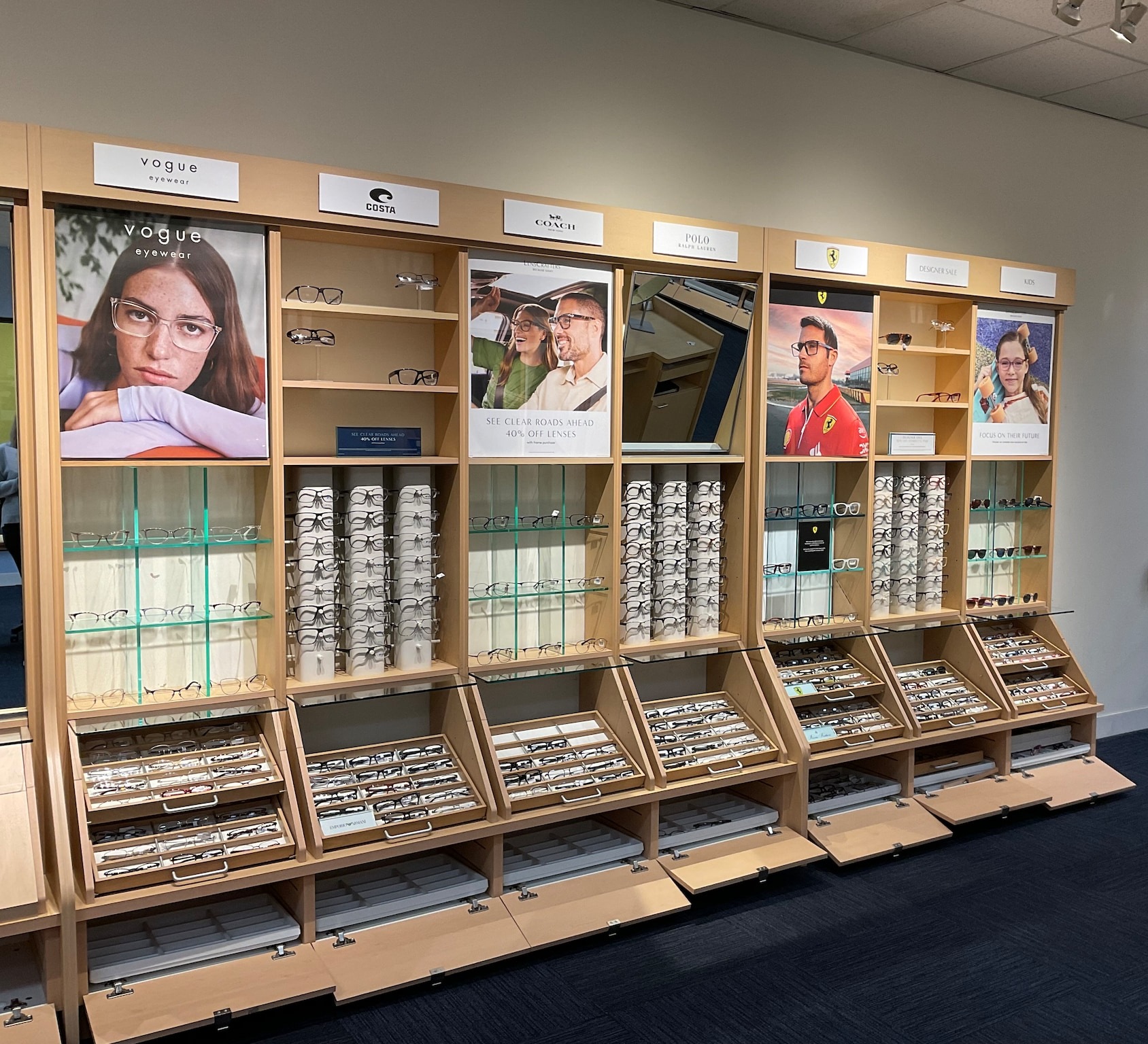 | Brands | Oakley, Brooks Brothers, Ralph, Vogue, Ray-Ban, Coach, Burberry, Versace, Michael Kors, Ralph Lauren, Polo, DKNY, Armani Exchange, Sferoflex, Tiffany & Co., Prada, Tory Burch, Dolce & Gabbana |