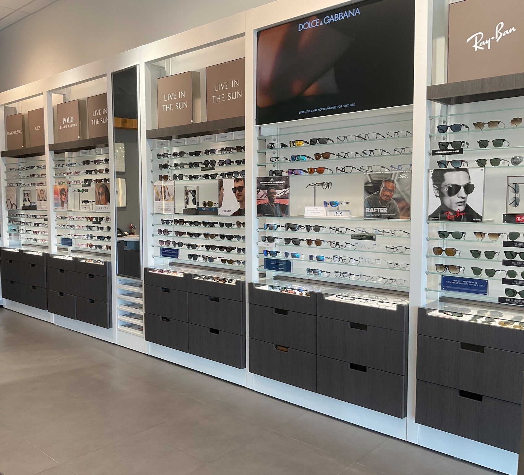 | Brands | Oakley, Brooks Brothers, Ralph, Vogue, Ray-Ban, Coach, Burberry, Versace, Michael Kors, Ralph Lauren, Polo, DKNY, Armani Exchange, Sferoflex, Tiffany & Co., Prada, Tory Burch, Dolce & Gabbana |