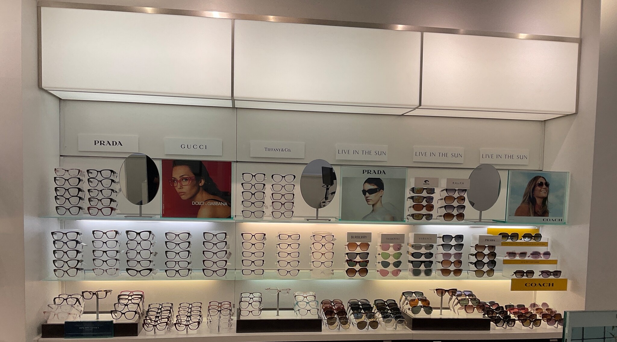 | Brands | Brooks Brothers, Bulgari, Burberry, Coach, Dolce & Gabbana, Giorgio Armani, Michael Kors, Oakley, Persol, Polo, Prada, Ralph, Ralph Lauren, Ray-Ban, Tiffany & Co., Tory Burch, Versace, Vogue |