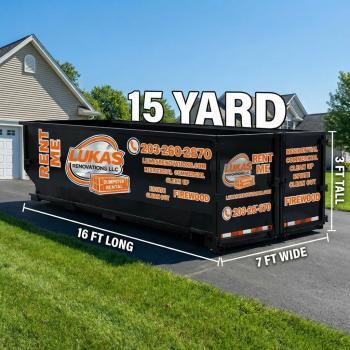 Lukas Renovations LLC is a locally owned dumpster rental service based in Fairfield, CT, proudly serving Fairfield County and surrounding areas. We offer driveway-safe 15, 20, and 25 yard dumpster rentals for both residential and commercial customers. Whether you need a roll off dumpster for a home cleanout, renovation, construction project, or business use, we provide fast, reliable delivery and pickup with transparent pricing. Known for same-day or next-day service, we make dumpster rental easy and stress-free. Fully insured and committed to quality service, Lukas Renovations is your trusted choice for dumpster rental near you.