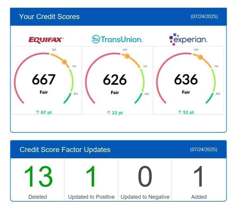 | Services | We identify inaccuracies, duplicate accounts, and fraudulent activity that are unfairly pulling your, You receive specific instructions on credit utilization, payment timing, and account management to m, Professional handling of the dispute process to challenge verifiable errors and outdated information, Debt & Credit Counseling, We help you build a sustainable financial foundation so you never have to pay for credit repair agai, A tailored action plan based on current FICO scoring factors., We handle the paperwork and follow-ups, ensuring your rights under the Fair Credit Reporting Act (FC, A comprehensive review of your credit reports from all three major bureaus (Equifax, Experian, and T, One-on-one coaching to help you understand credit mix, history length, and how to avoid future pitfa |