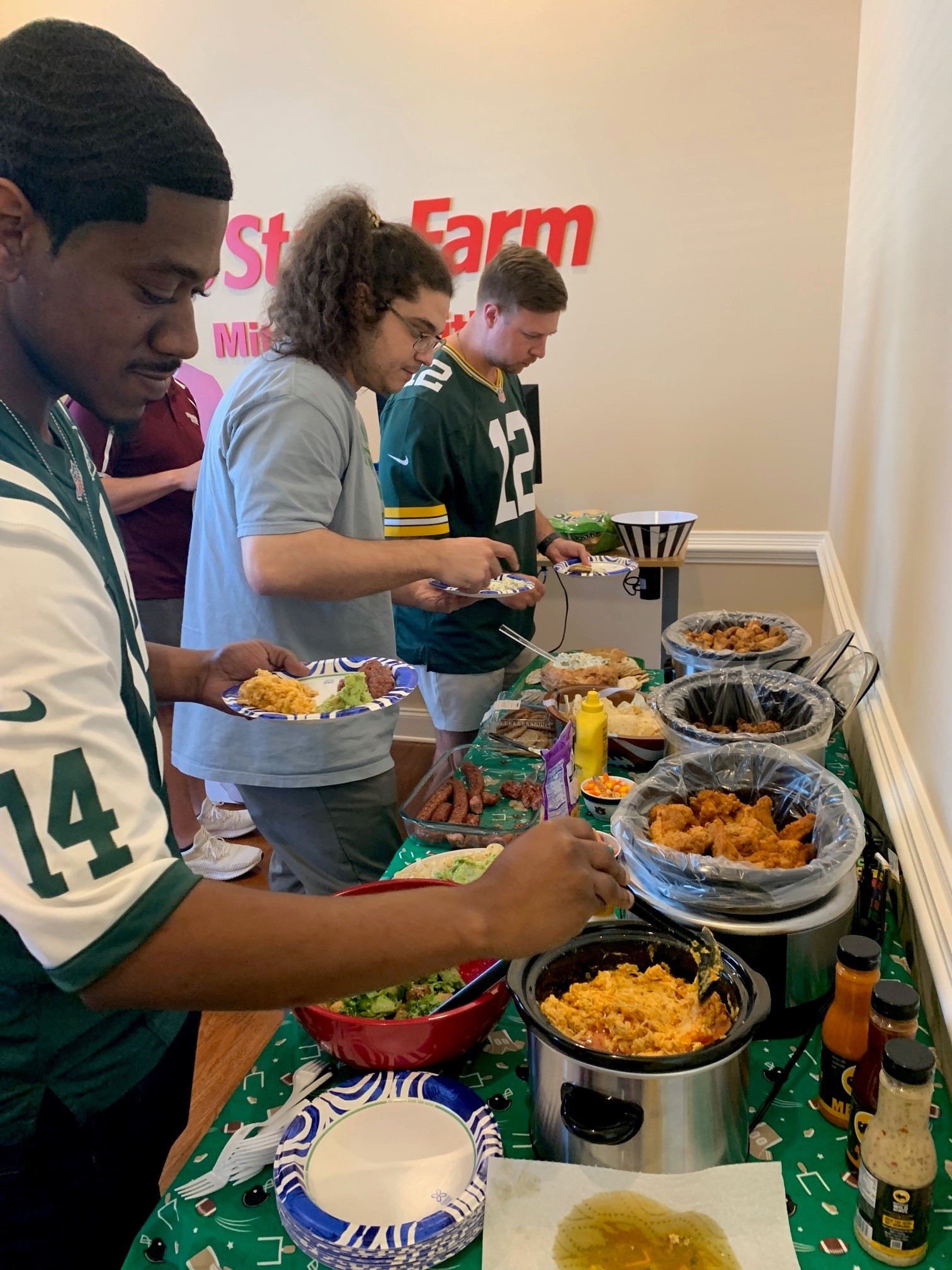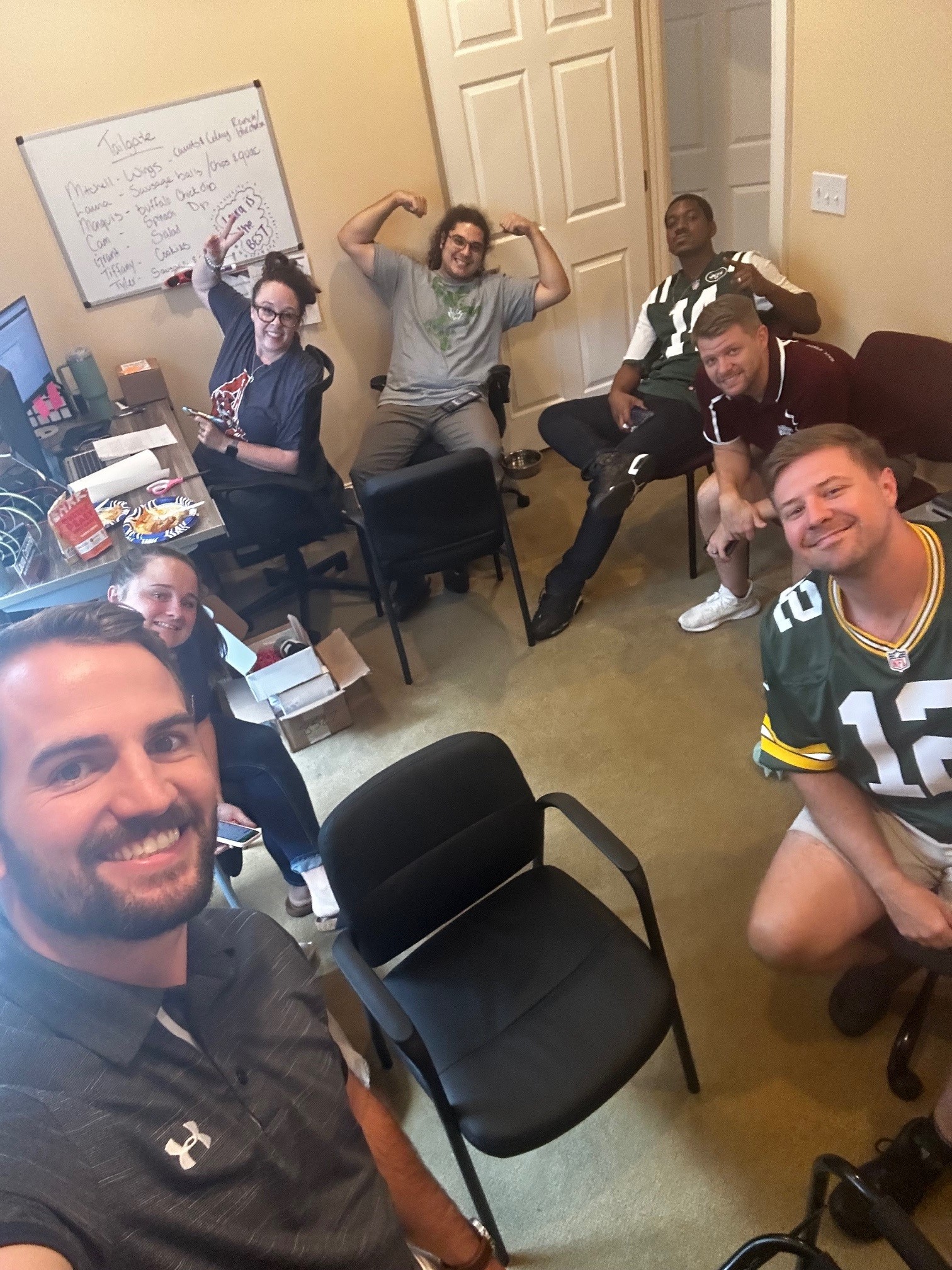 What do you do in an office full of competitive people? You have an office fantasy football league, of course! And what's a draft party without tailgate food? Rumor has it, it was one of the "Top 3 BEST DAYS in the office EVER". Looking forward to an epic season filled with friendly competition!
