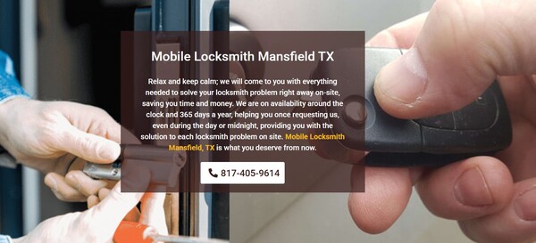 Relax and keep calm; we will come to you with everything needed to solve your locksmith problem right away on-site, saving you time and money. We are on availability around the clock and 365 days a year, helping you once requesting us, even during the day or midnight, providing you with the solution to each locksmith problem on site. Mobile Locksmith Mansfield, TX is what you deserve from now.