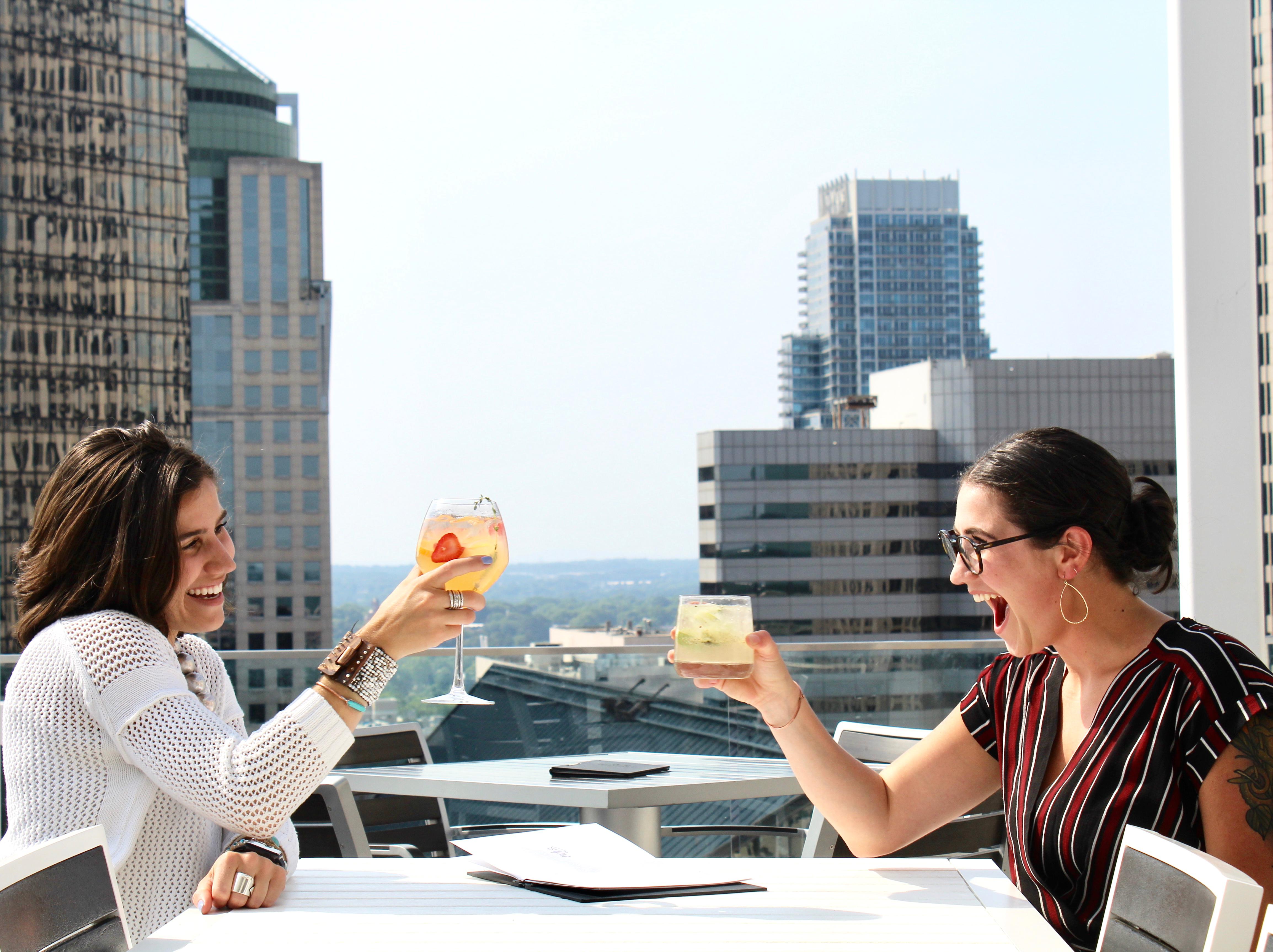 Friends toasting on rooftop with view - Nuvole Rooftop TwentyTwo