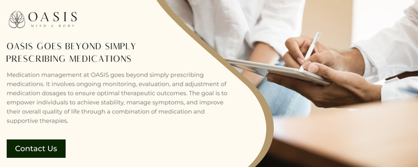OASIS Mind and Body is dedicated to your mental and physical wellness. Our primary services include supportive psychotherapy, aesthetic services, and personalized medication management services for patients 15 and older. We foster your overall wellness through meticulously tailored care, seamlessly integrating medication management services with holistic support. Our goal is to empower our patient’s to be active participants in feeling and being the best version of themselves. At OASIS, you can also find a diverse range of therapeutic modalities, including cognitive behavioral therapy, applied behavioral analysis, and drama & expressive arts therapy to address your mental health needs comprehensively. Additionally, our facility offers several private amenities and provides rejuvenating aesthetic services to enhance your overall well-being and confidence.