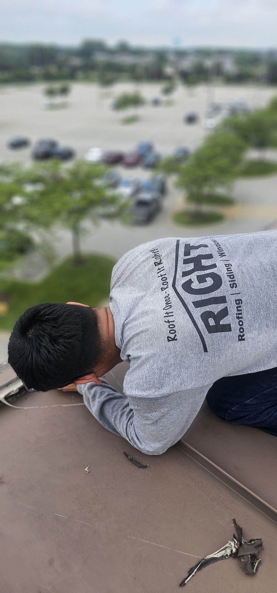 Flat roof leak repair by Right Roofing repair specialist in West Des Moines, IA.