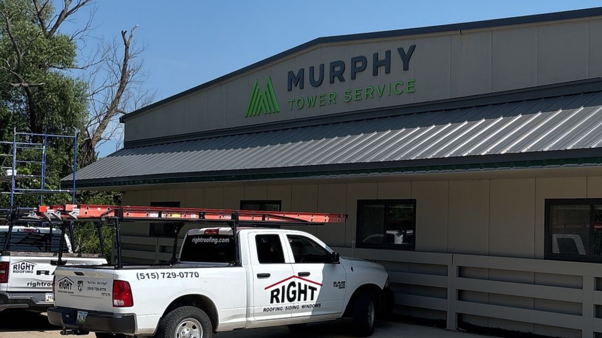 Standing Seam roof installation on the front of a business in Carlisle, IA.